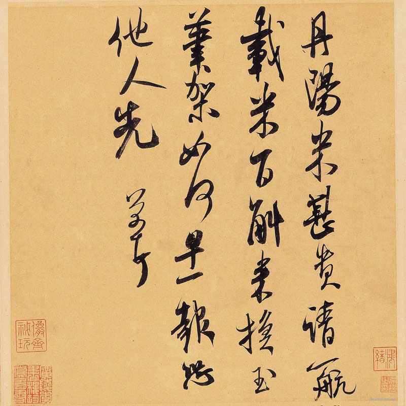 米芾“翰牍九帖”之一,此尺牍的书法风格,正是在追求以二王为代表的晋人书札作风。米芾名其居为“宝晋斋”,十分仰慕的正是晋人风流。他研习二王甚勤,尤其《蜀素帖》,后半部全从右军《兰亭》中来。但他最为倾心的是“破体”的小王,故《海岳名言》有谓:“子敬天真超越,岂父可比也。”落笔痛快,气势开张,英俊豪迈,更契合于米芾的性格。《丹阳帖》的写法就和献之笔札相近。但是,既经“重法”的唐代,提按已是普遍的笔法,兼之米芾个性强烈,字势愈加跌宕,用笔更形起落,牵丝显露,出锋锐利,真是“风樯阵马,沉著痛快”,大胆而泼辣,尺素之间亦使出了浑身解数.这与二王的散淡就有了距离.米芾毕竟还是米芾,米字到底还是米字,他能著名书史,开宗立派,不是没有缘由的.