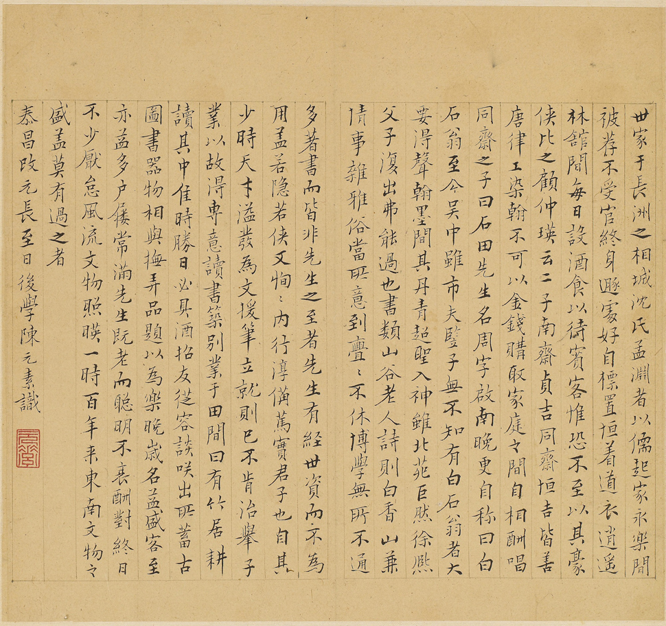 陈元素《沈周简述》楷书(选自《沈周文徵明小像册》) 香港近墨堂书法研究基金会藏(感谢
