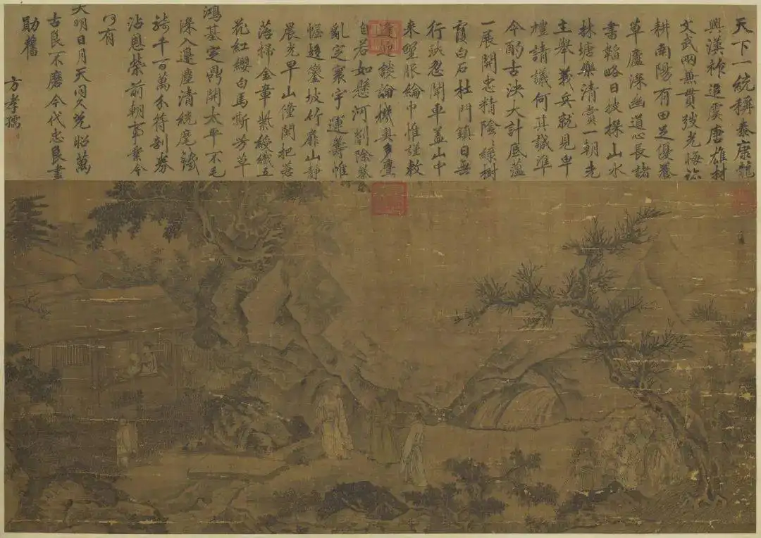 方孝孺《题宋李迪三顾图》(天下一统称泰康)纸本 行书 41.1x175.7cm 台北故宫博物院藏(故画00375200000)