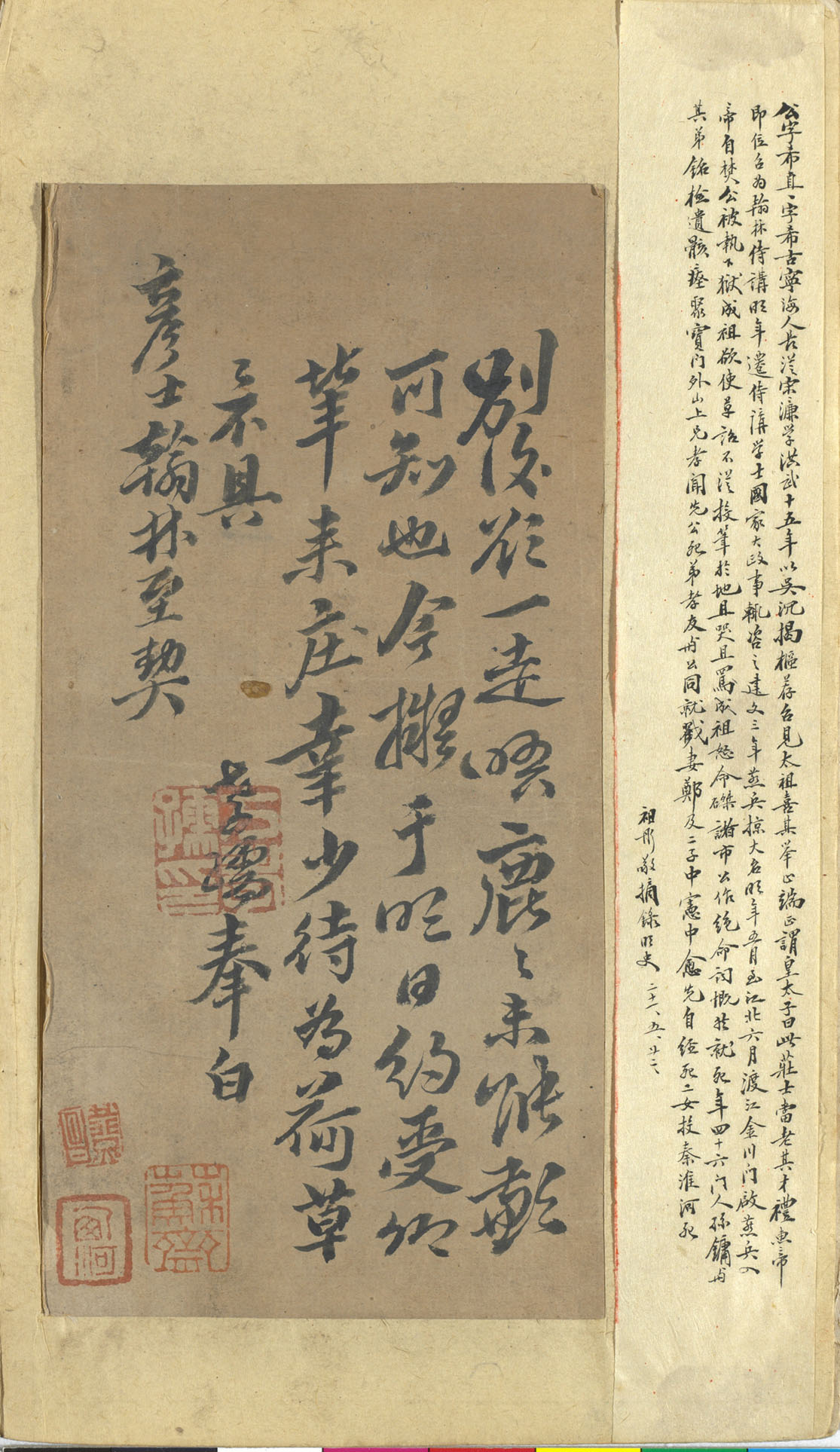 此札内容为告朋友彦士未赴约之由,并询问及都转公之情况,最后言及朋友所请写之寿序文因“俗冗”心不能静而尚未脱稿。此札内容平实,言简意赅;其字气息沉厚,点画老辣,结体硕长,有大人态。古来忠烈、重臣之字,如颜真卿、翁同龢等都是此类风格。从此札中,可见其人实乃端人正士,笔笔到位,字字独立,无逢迎之态,令人奉读之如面君子。