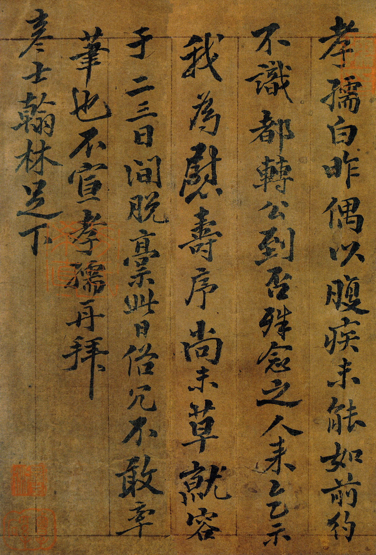 释文: 别后欲以走晤,鹿鹿未能,歉可知也。今拟于明日约,受乡辈来庄,幸少待为荷,草草不具。孝孺奉白,彦士翰林至契。