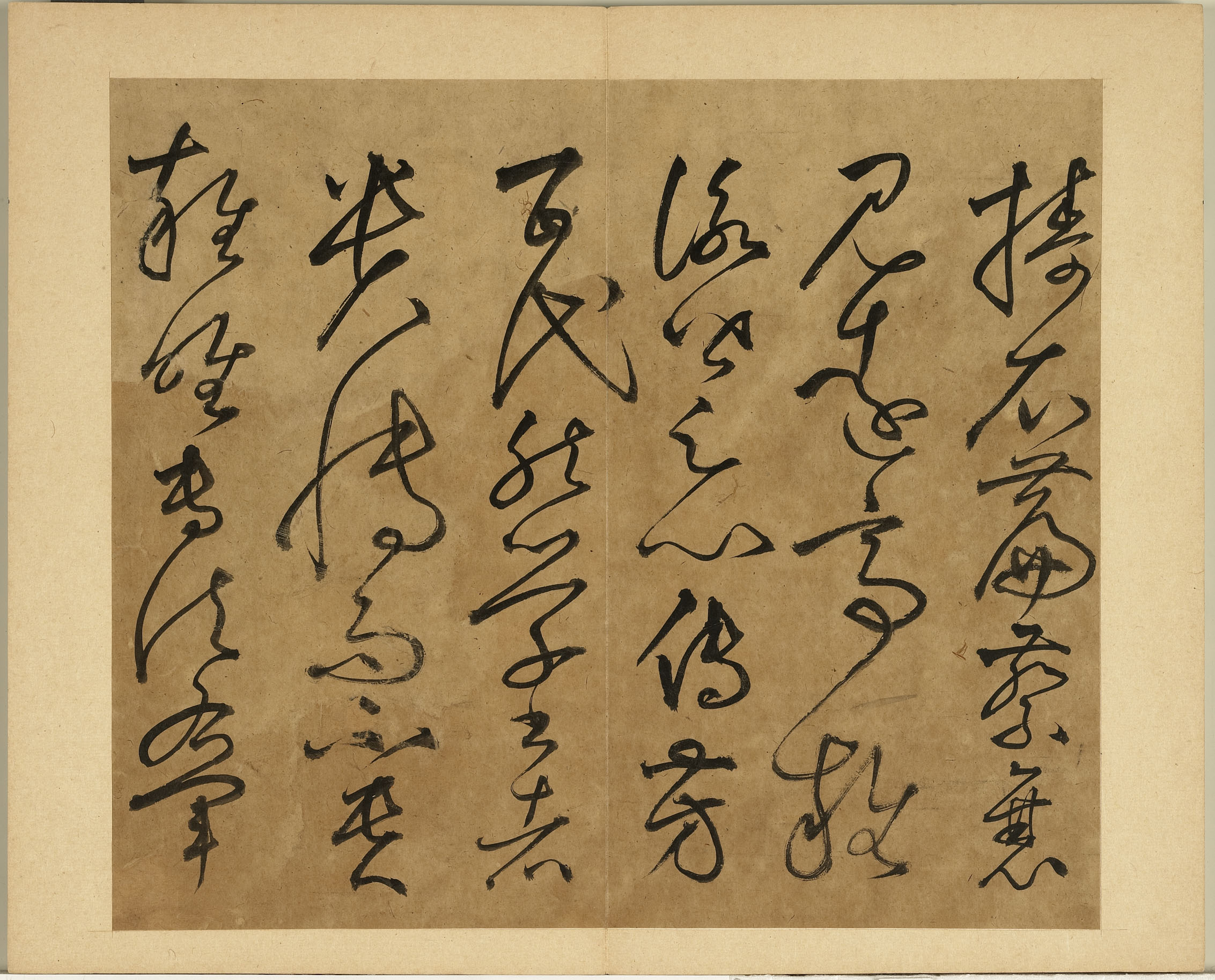 双鉤悬腕者。食指中指圆曲如鉤。与拇指相齐。而撮管於指尖。则执笔挺直。大字运上腕。小字运下腕。勿使肉衬於纸。则运笔如飞。让左侧右者。左肘让而居外。右手侧而过中。常使笔管与鼻准相对。则行间直下。而无敧斜之患。虚掌实指者。指不实则战掣无准。掌不虚则窒碍无势。三指齐撮於上。而第四指抵管於下。无垂不缩。无往不收。一画之间。变起伏於锋杪。一点之内。殊衄挫於豪芒。意前笔后者。熟记古帖。於字形大小。偃仰平直。疎密纎穠。蕴藉於心。随物赋形。各得其理。诚如是。古人岂难到耶。(草书)。