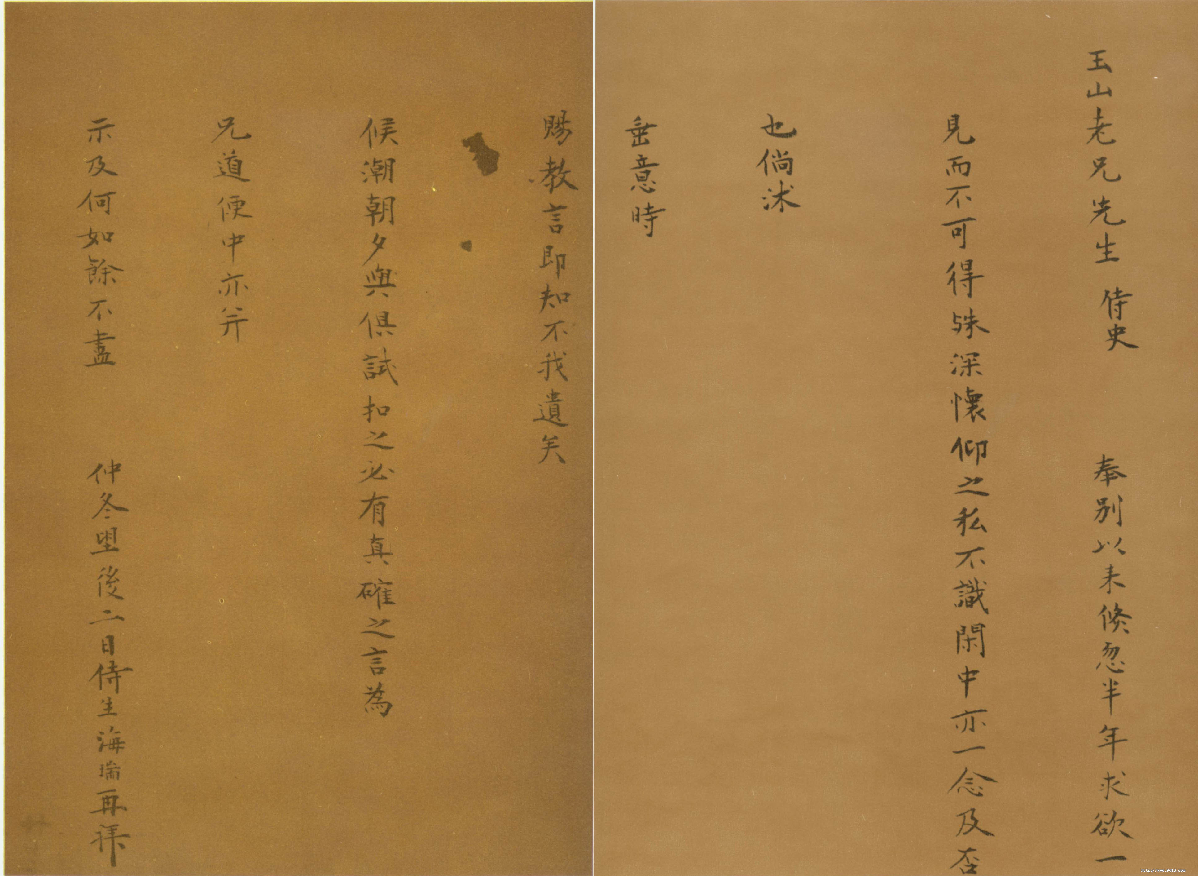 用正统的二王书法审美标准评判海瑞的书法,其书并不中规入矩。海瑞书法,当以行书和小楷为主,这两种书体,估计较真实体现海瑞书法的历史面貌,其他书体的作品,恐怕都是后人假托之作。小楷是封建士子参加科举考试时通常采用的书体,士子们从破蒙读书起,就得修炼这种书体。明朝的科举已存在“以书取士”现象,这种现象到清朝尤盛,因而,写得一手工稳流丽的小楷,在科举中往往容易题名于金榜。海瑞的小楷,写得并不漂亮,他有一帧《奉别帖》,也称《致玉山书》,今藏山东文物总店,许多版本的书法集子都录此作为海瑞书法的代表作,应是海瑞真迹无疑。海瑞这帧作品就写得稚拙率意,丝毫见不到二王小楷和唐代楷书的风规,与正统书法相去甚远。海瑞考科举时不知是不是用这样漫不经心的书法答状子,若是,他得了个举人,也就难怪了。其实海瑞学问不浅,匡亚明主编的“中国思想家评传丛书”(南京大学出版社)将他忝列其中,不是没有道理。海瑞四岁丧父,母亲谢氏励节抚养。谢氏知书达礼,为童年海瑞亲授《孝经》、《大学》、《中庸》等儒家经典,等到海瑞年纪稍长,谢氏又为海瑞选择严师送到据说是当时海口镇靠东的一家私塾读书,后来转到郡学就读。海瑞读书非常刻苦,常“与二三同志辨明学术,严课功修”,且从小就有远大志向,“稍知识即欲学为圣贤”,在当时就已受到人们尊敬,“人咸称为道学先生,相率师事之”。但他在那时已有些离经叛道,对士大夫在官场中人表示不满,尤其对官场中盛行的“乡原”现象深恶痛绝。这样一位性情中人,写出那样的小楷书法,也就在情理之中了。