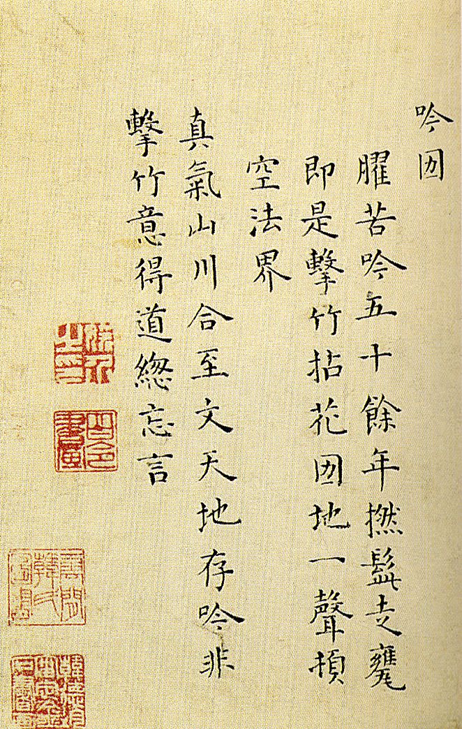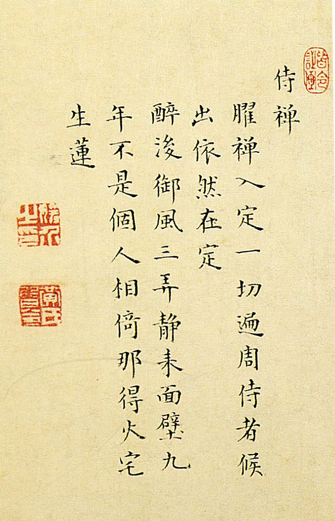 释文:偶客西泠年复年,每当风雨菊花前。孤山不放林逋鹤,灵隐唯参雪窦禅。葛岭苍霞犹似昔,苏堤新柳乍如烟。相逢喜遂登龙头,只恐临岐共怅然。和远山李夫人韵似雲客词宗正。鸳水黄媛介。