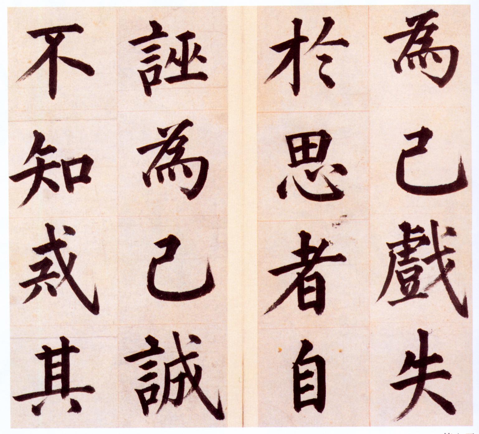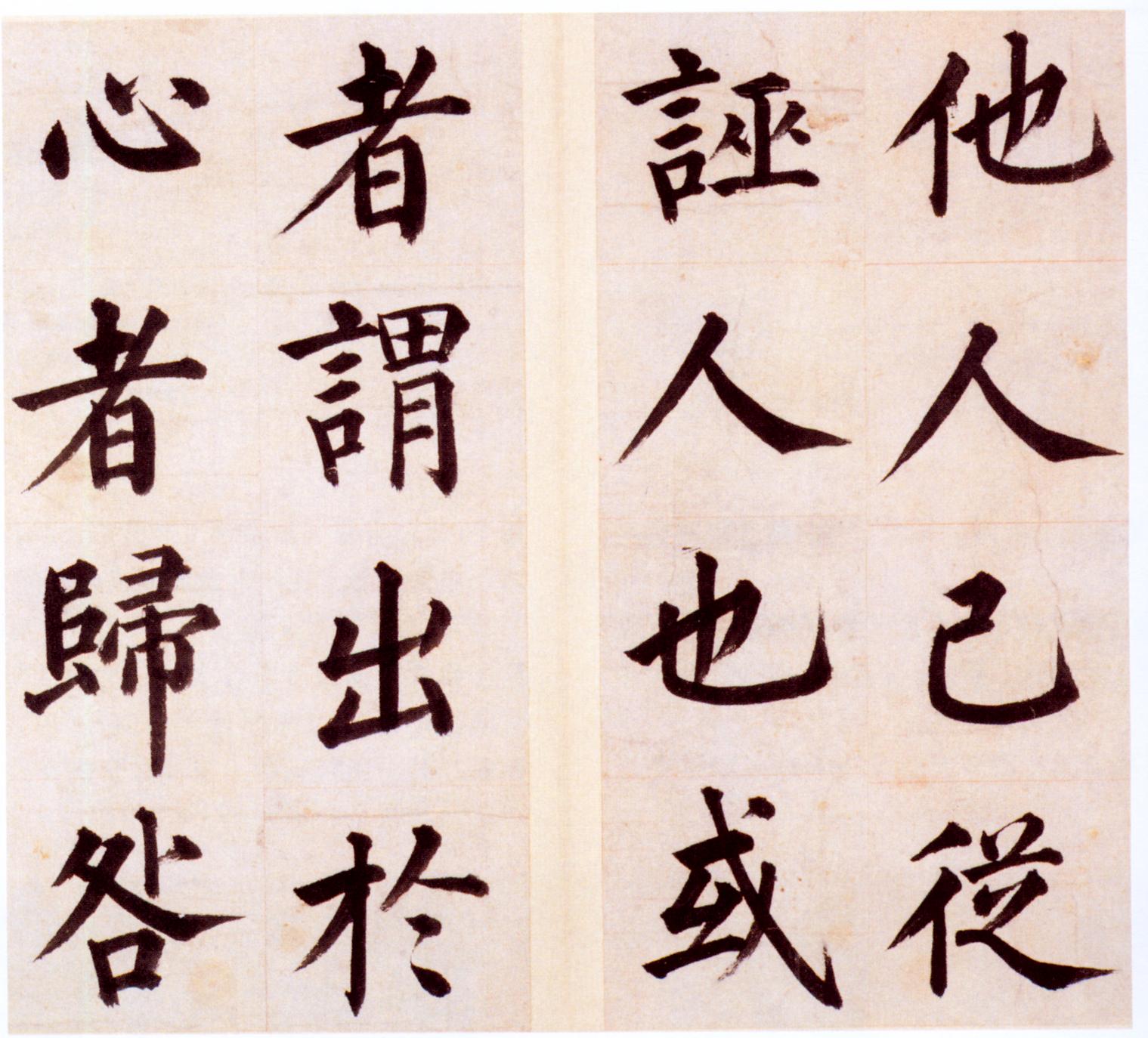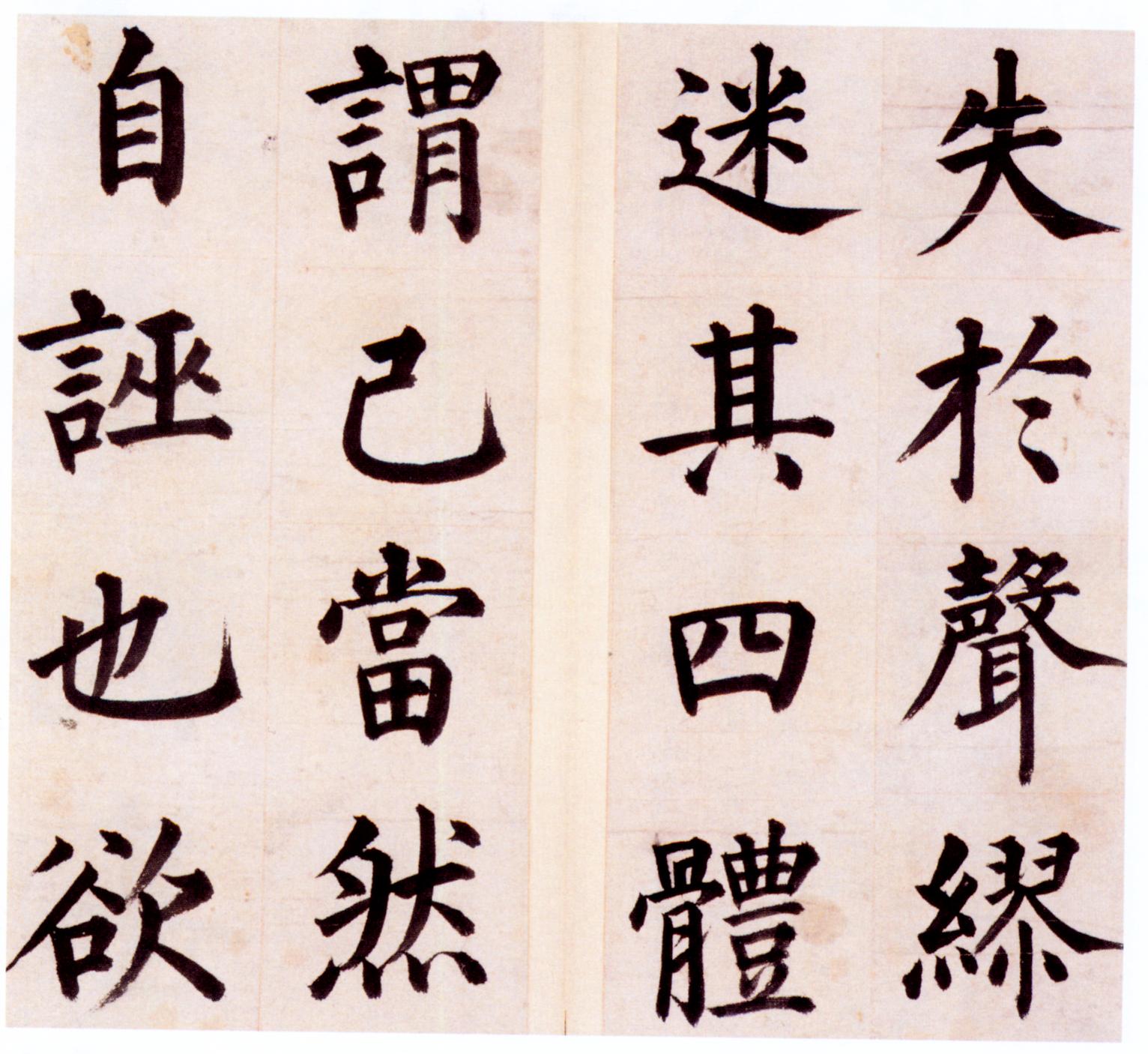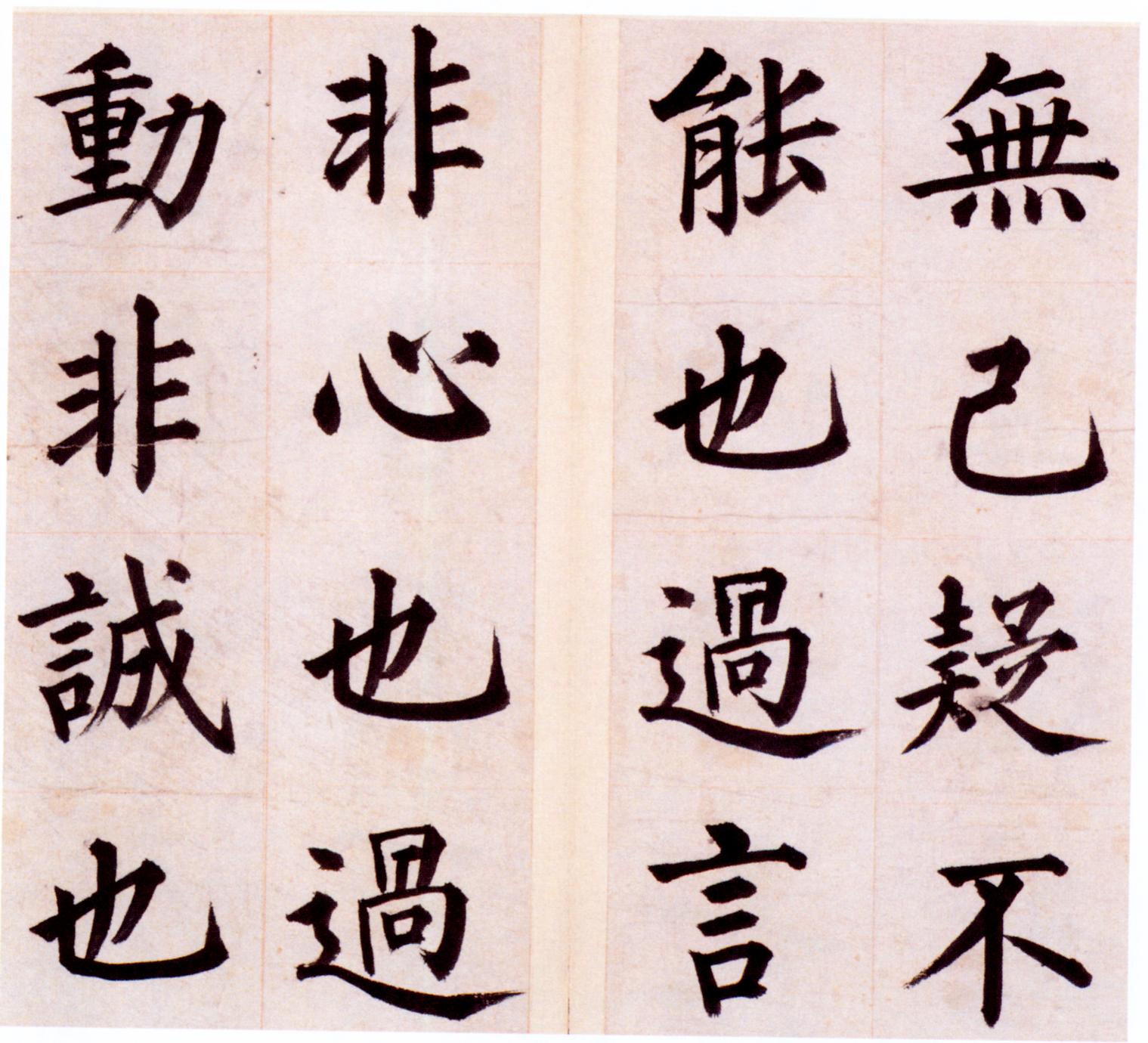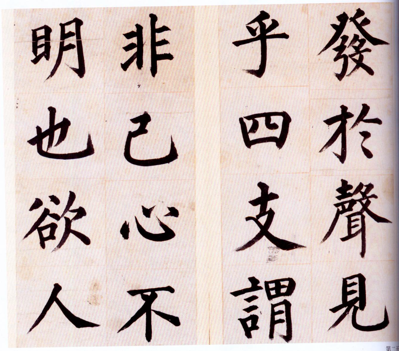 此书册用笔劲健方正,结体紧密,笔墨厚重,得力于柳公权书法,但一些笔画过于板滞僵硬,未脱“台阁体”遗风。王世贞《艺苑巵言》曾云:“立纲小变二沈为方整,就其体中可谓工致。”