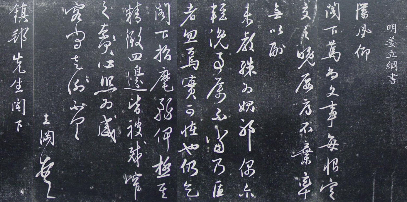 姜立纲的书法,不但当时国内有名,就在日本同样享有很高名气。据何乔遴《名山藏》所记,日本国门高十三丈,为求匾额,曾遣使来我国,请姜立纲书写。“立纲为书之,其国人每自夸曰:此中国惠我之至宝也”,这是中日两国人民源远流长的文化交流、友好往来史上的一则佳话。此外,在姜立纲的生前身后,他的书法都曾博得很高的品评,这在明人的笔记作品中屡见记载。如项子京《蕉窗九录》曰:“朱孔肠、姜立纲皆椽史笔也,所谓南路体也”。《书画跋》云:“姜自置身金紫,今遗迹在京都,价亦不减希哲(祝枝山)、履吉(王宠)。效之者多白衣跻显贵”。《野获编》言:“嘉靖间,吾乡有谈相号木泉者,幼而门役,长而伟议,工书,习姜太仆立纲体。入京师,值世庙西内修醮,因得以书供事斋官,大被宠眷,积官工部左侍郎”。《三希堂法帖》收有他的墨迹。弘治十二年卒,年55岁,孝宗特命浙江布政使、温州知府邓淮临祭立碑。遗著《东谿书法》1卷,论八法八病,已佚。