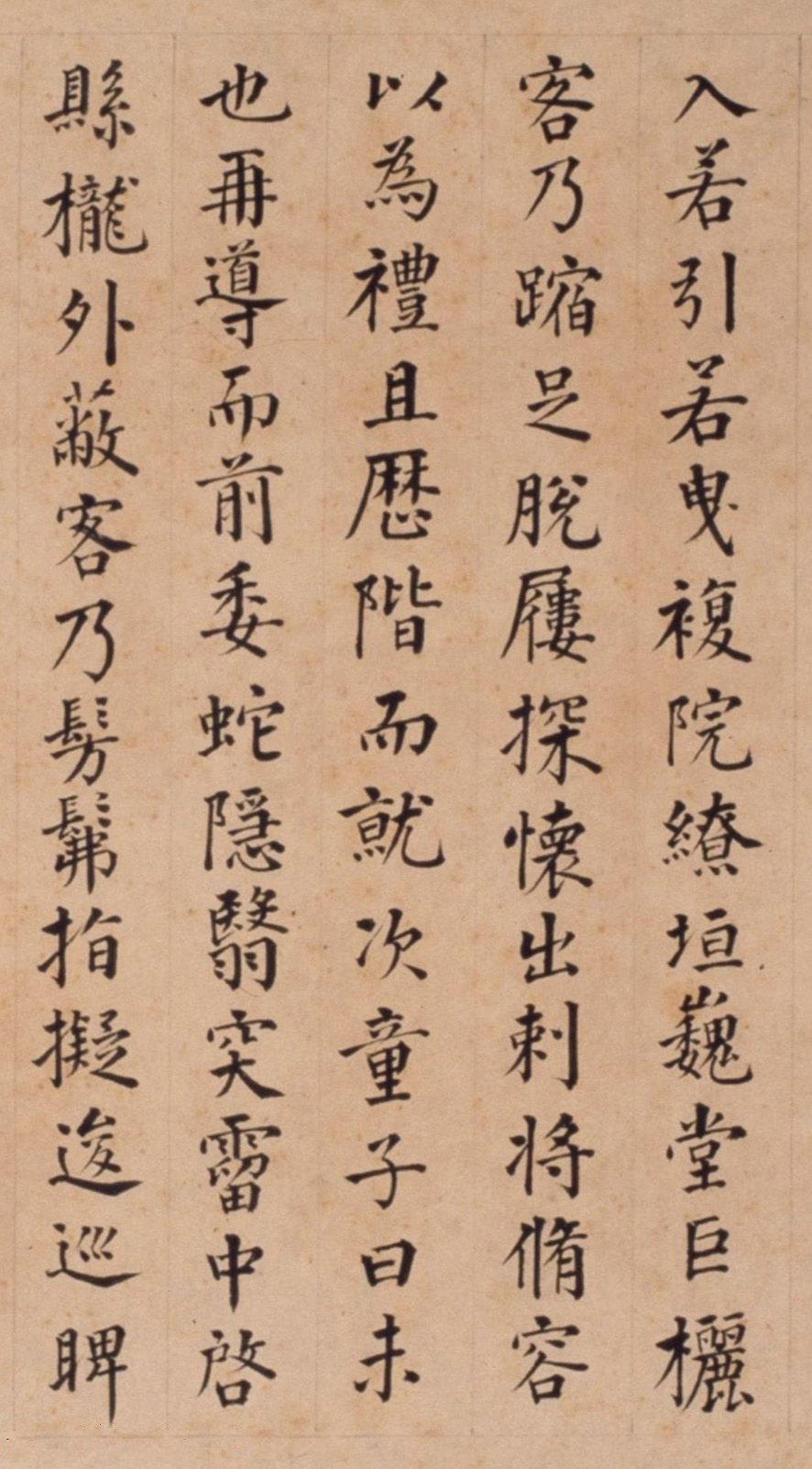 《邃庵解》楷书,书于故宫博物院藏沈周《邃庵图卷》后纸。此文与沈周《邃庵图卷》、吴宽的《邃庵铭》三人合作一起送给杨一清的。(1454-1530),字应宁,号邃庵,祖籍云南安宁。明朝重臣,历侍成化、弘治、正德、嘉靖四朝,两次入阁预机务,后为首辅,官居一品,位极人臣。