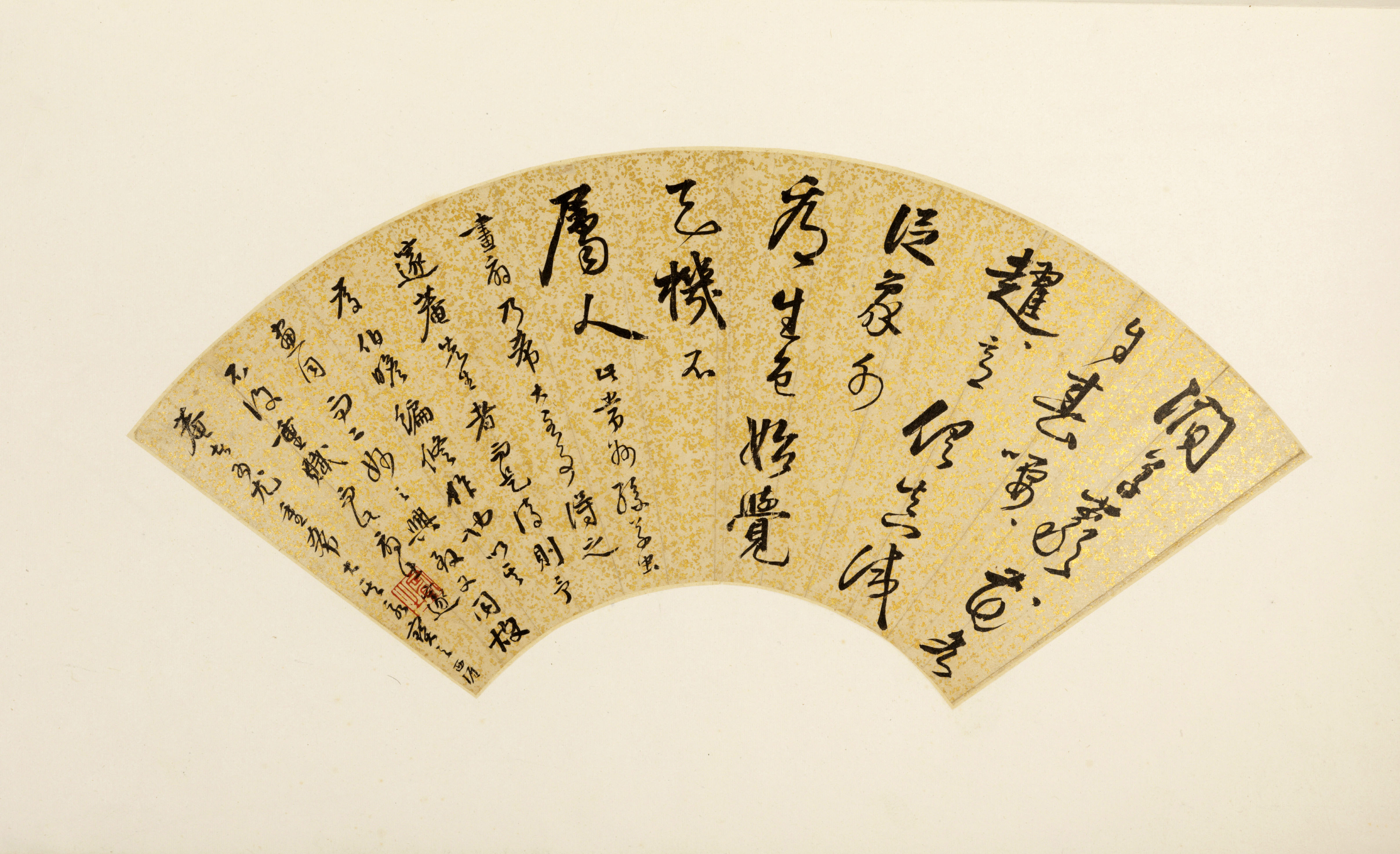 此扇面为李东阳书为友人“伯瞻”所作七绝诗一首。诗中表达了对常州孙氏所作草虫图的称赞。书法流畅自然,笔力矫健,体现了作者纯熟的书法功力。