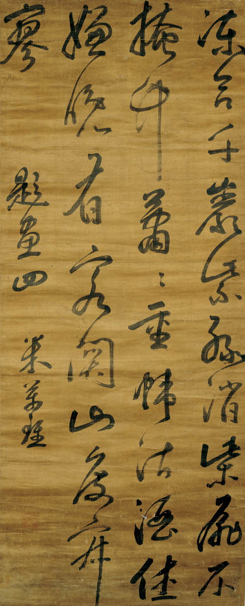 米万锺《草书诗轴》 绢本,纵175厘米,横45厘米。武汉博物馆藏