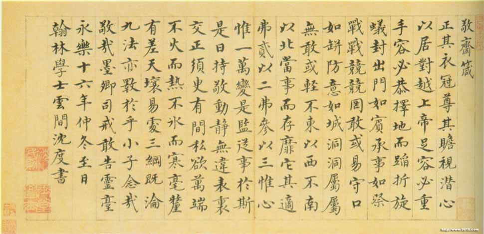 沈度《敬斋箴册》 楷书,纵23.8cm,横49.4cm。 北京故宫博物院藏