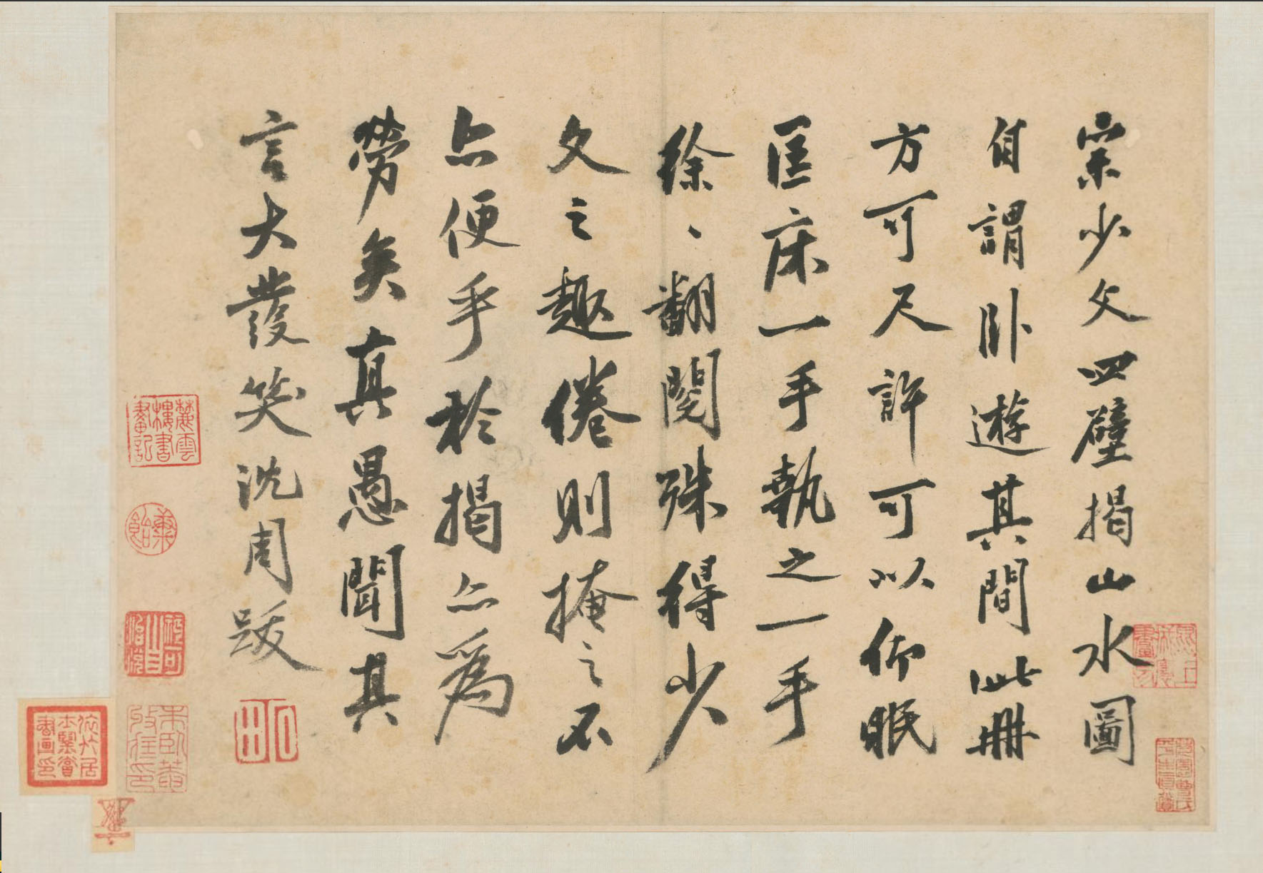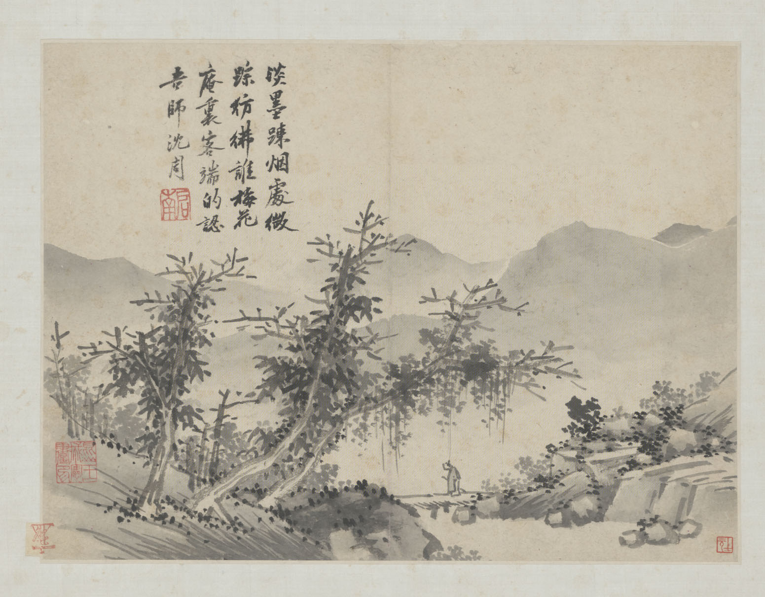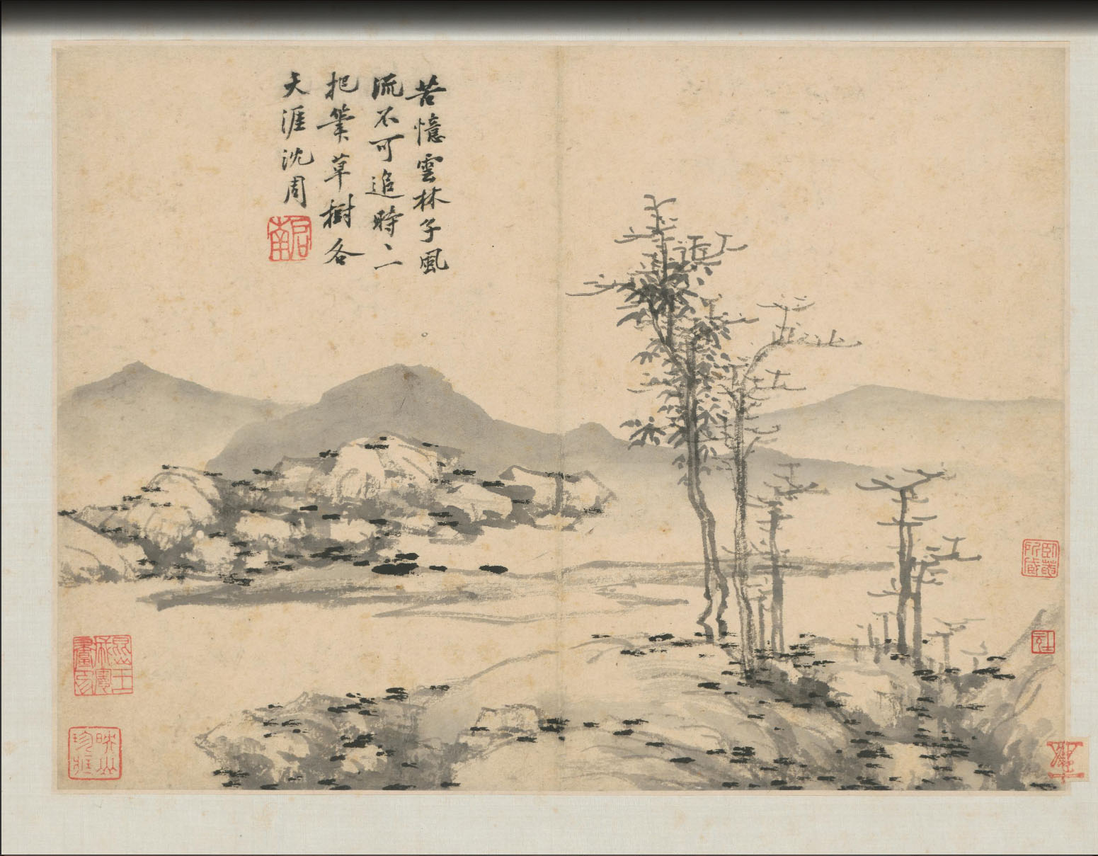 沈周《卧游图》册 纸本水墨、淡设色 共十七开,每开纵27.8厘米 横37.3厘米 北京故宫博物院藏