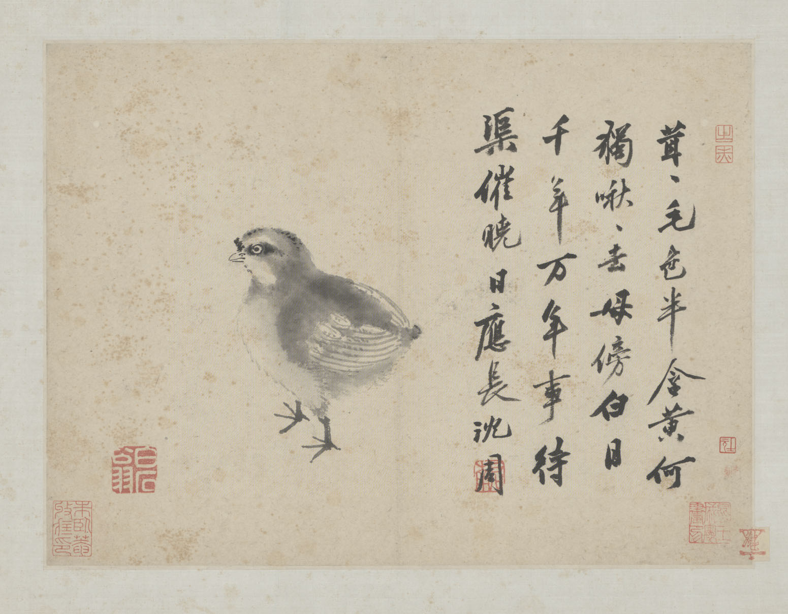 根据末开画家自题,可知该册页的“卧游”之名源自南朝宋宗炳在居室四壁挂山水以卧游的典故。然而不同于挂轴的是,该图册还可于卧床时仰面翻阅。 由此可见画家的绘制初衷和生活情趣。册中所绘山水、花鸟,运用多种画法,抒写各自意趣,也集中反映了沈周多样的艺术风格和丰富的内心世界。册中有山水7页,其余10页均写日常生活中习见的花卉、 禽畜等,清新、质朴,洋溢着自然天趣。画法也随意灵活,设色或水墨,或没骨,或勾勒渲染,形简神完。