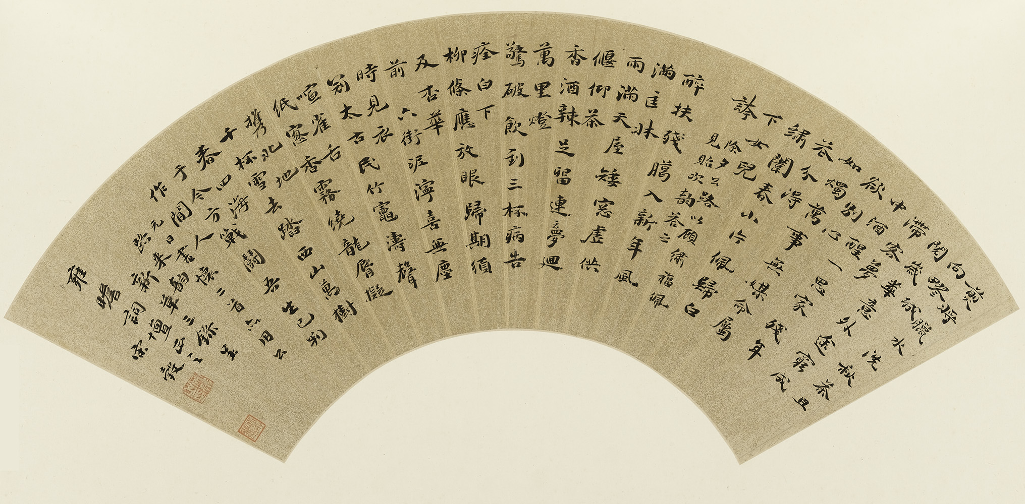宋珏《楷书元日书怀二首扇页》纸本楷书 17.1×54cm 上海博物馆藏