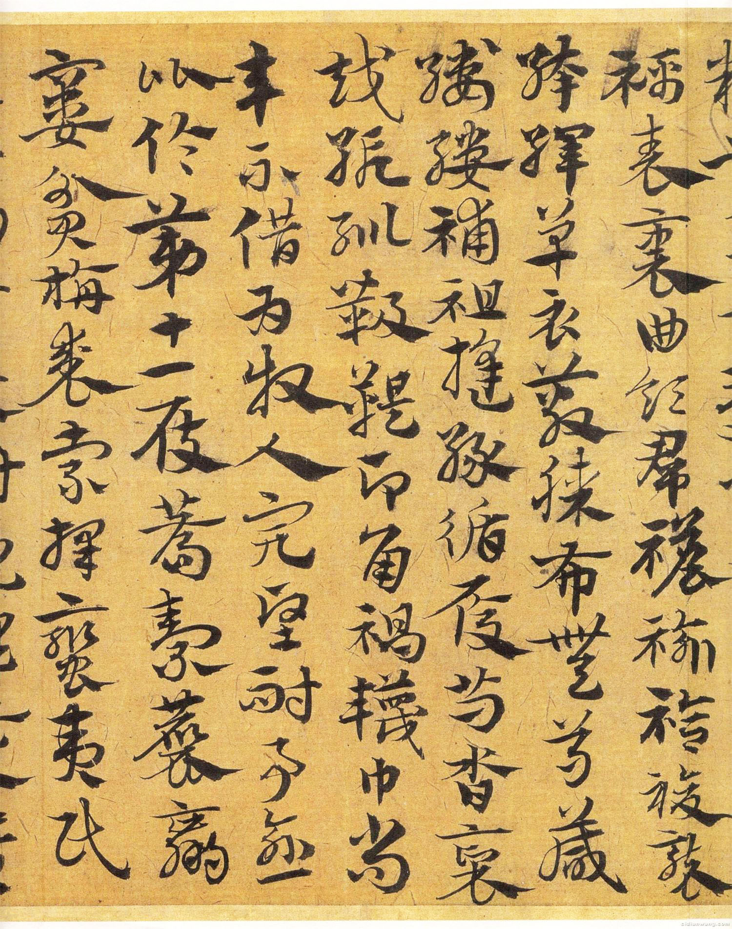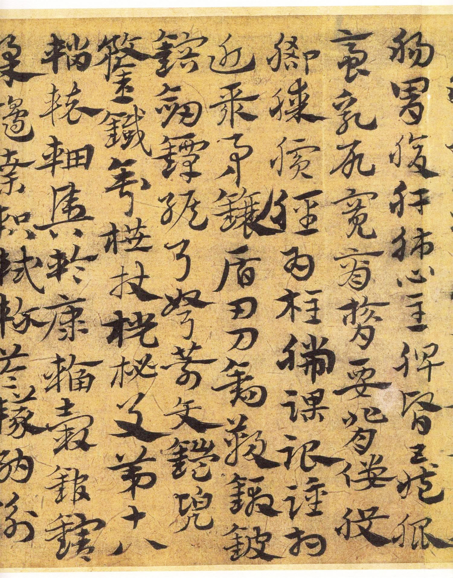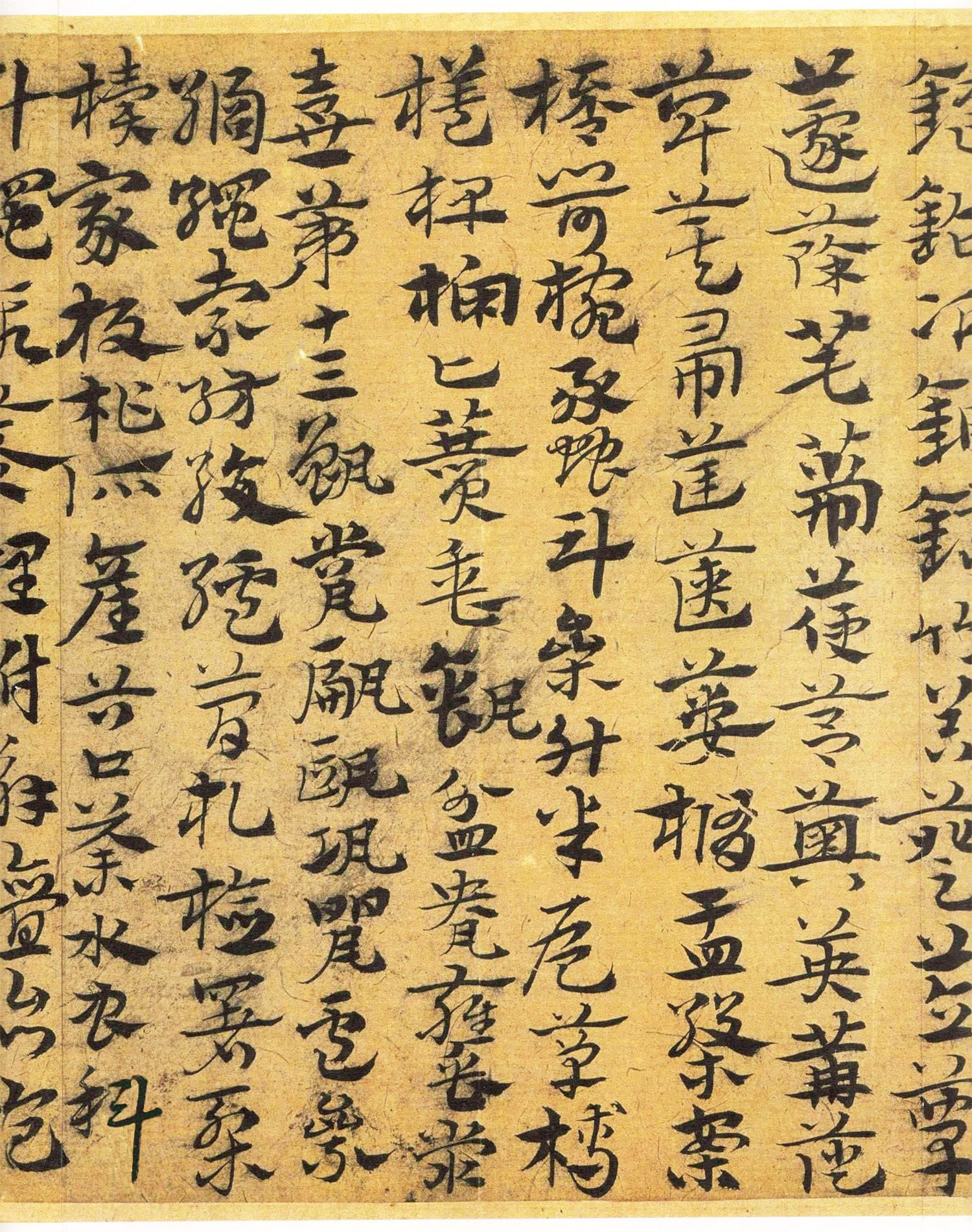 宋克《急就章》,章草。天津艺术博物馆藏。洪武二十年(1387)六十一岁所作,宽十三点八厘米,长二百三十二点七厘米。篇末有其小楷跋“洪武丁卯六月十日临于静学斋”。此年宋克卒,这是目前他存世最晚的作品。