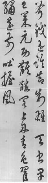 这件草书《七言绝句诗轴》藏于南京博物院,纸本,纵350cm,横95cm。释文曰,“斧钺遥临节制雄,天书早已策元功。麒麟阁上丹青色,翟绣宴前土握风。”未属款识,只钤白文印两方,一方为“汤焕之印”、一方为“尧文父”。其传世书作多为自作诗,此诗风格颇类作者诗风,又因未见古人有此诗作,故笔者臆断为汤氏自作诗。