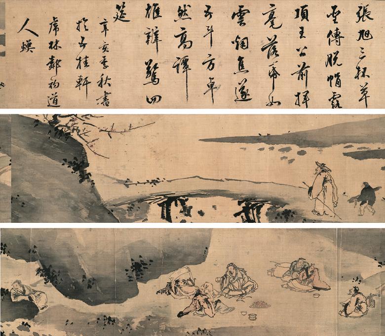 汤焕,字尧文,号邻初,仁和(今浙江杭州)人,斋号五桂轩等。生卒年不详,隆庆四年(1570年)举人。为江阴教谕,后征为翰林待诏,转郡丞。善书,兼工篆刻,亦有诗名。《江阴志》称,“焕工翰墨,持缣素索者应之无倦色,吴越间比之文待诏(征明)。”存世书作有草书长卷《杜甫北征·奉先县咏怀诗》、草书长卷《西湖十景诗》、行书长卷《千字文》、章草《自作诗·游西山诗册》、草书横幅《题张路<饮中八仙图>》、《金笺扇面·各体诗三篇》(与殷都、陆应阳合作,各自作诗并书,汤居中,以隶书为之并钤己印)、行书《五言绝句立轴·楼雨香烟润》等大量作品。从其传世作品看上,汤焕作书兼善各体,尤善草书,草书中书风又变化较大,所以可以说,汤焕是一位勤勉又极富探索精神的艺术敏感性较强的书家。