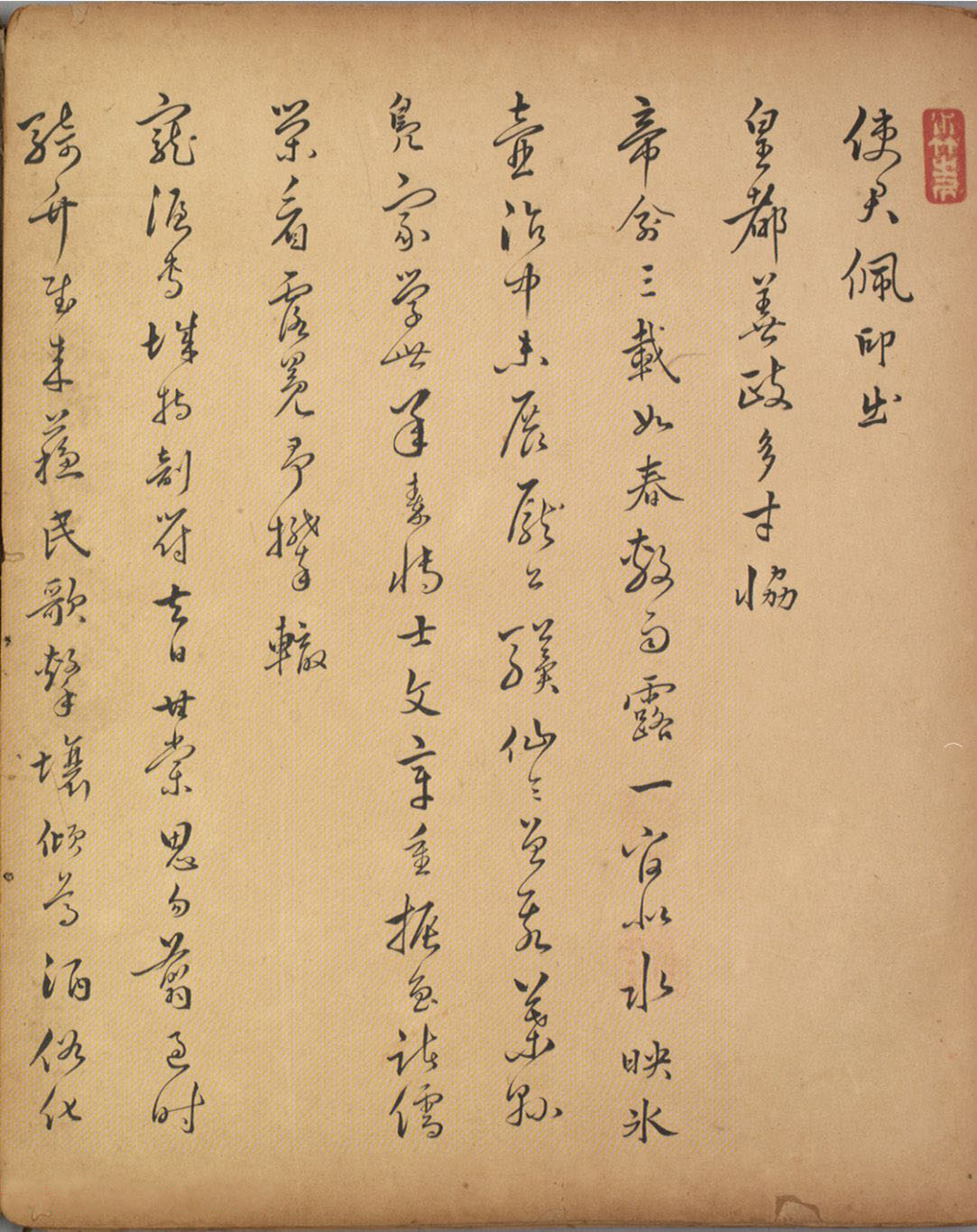 汤焕《草书七言诗页》纸本草书 北京故宫博物院藏 释文:使君佩印出…… 款署:邻初焕 钤印:水竹之居(起首白文)邻初道人(白文)剑悟斋(白文) 【资料来源】故宫博物院数字文物库(新00076990-30/40)