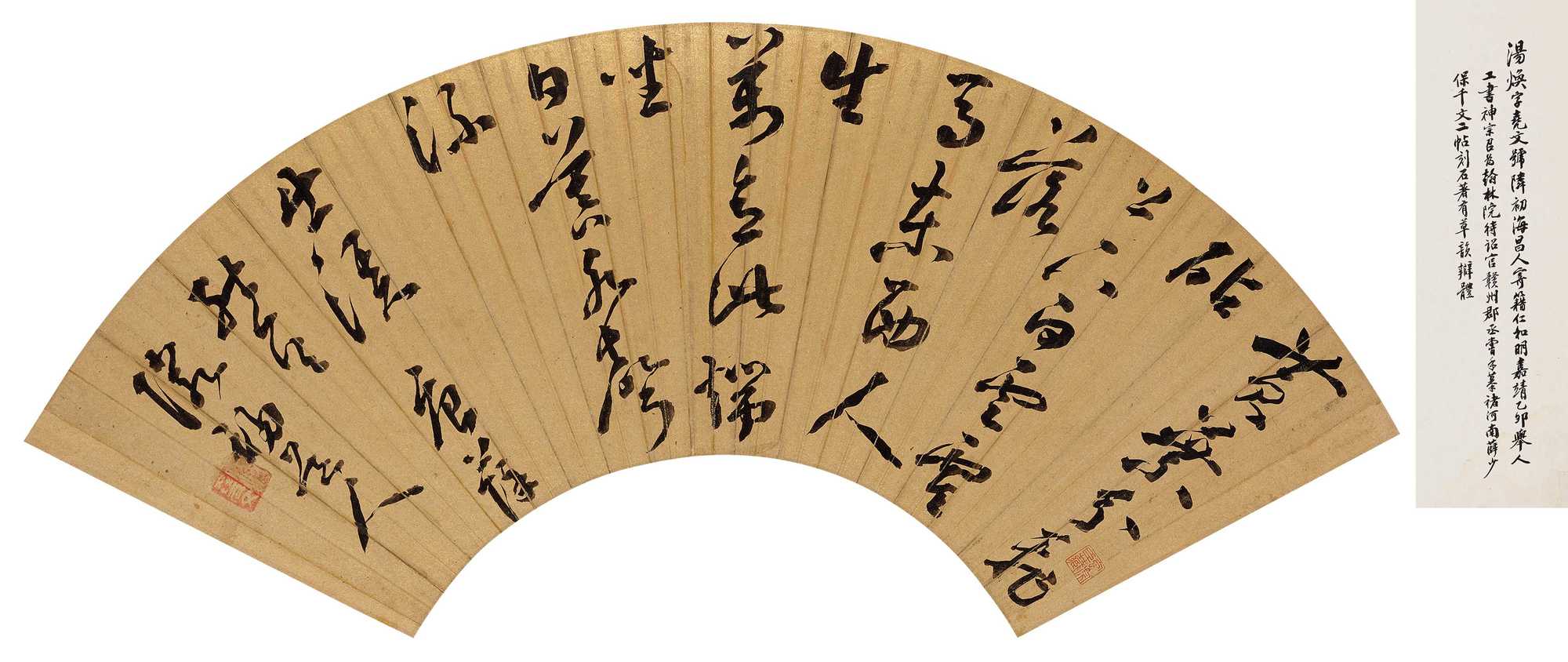 汤焕《 草书薛能秋溪独坐诗扇面》金笺草书 16.5×51cm 中国嘉德2022春季拍卖会