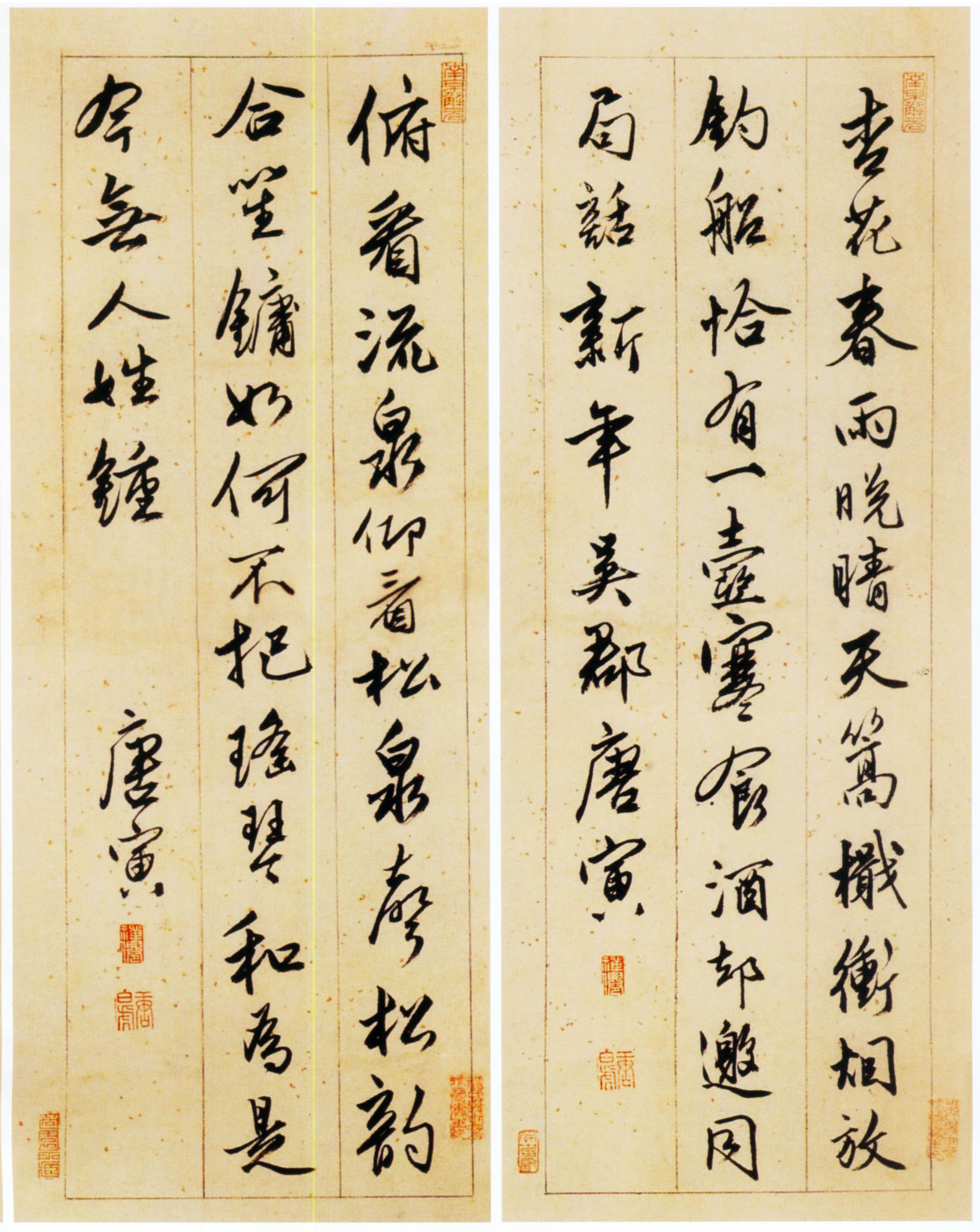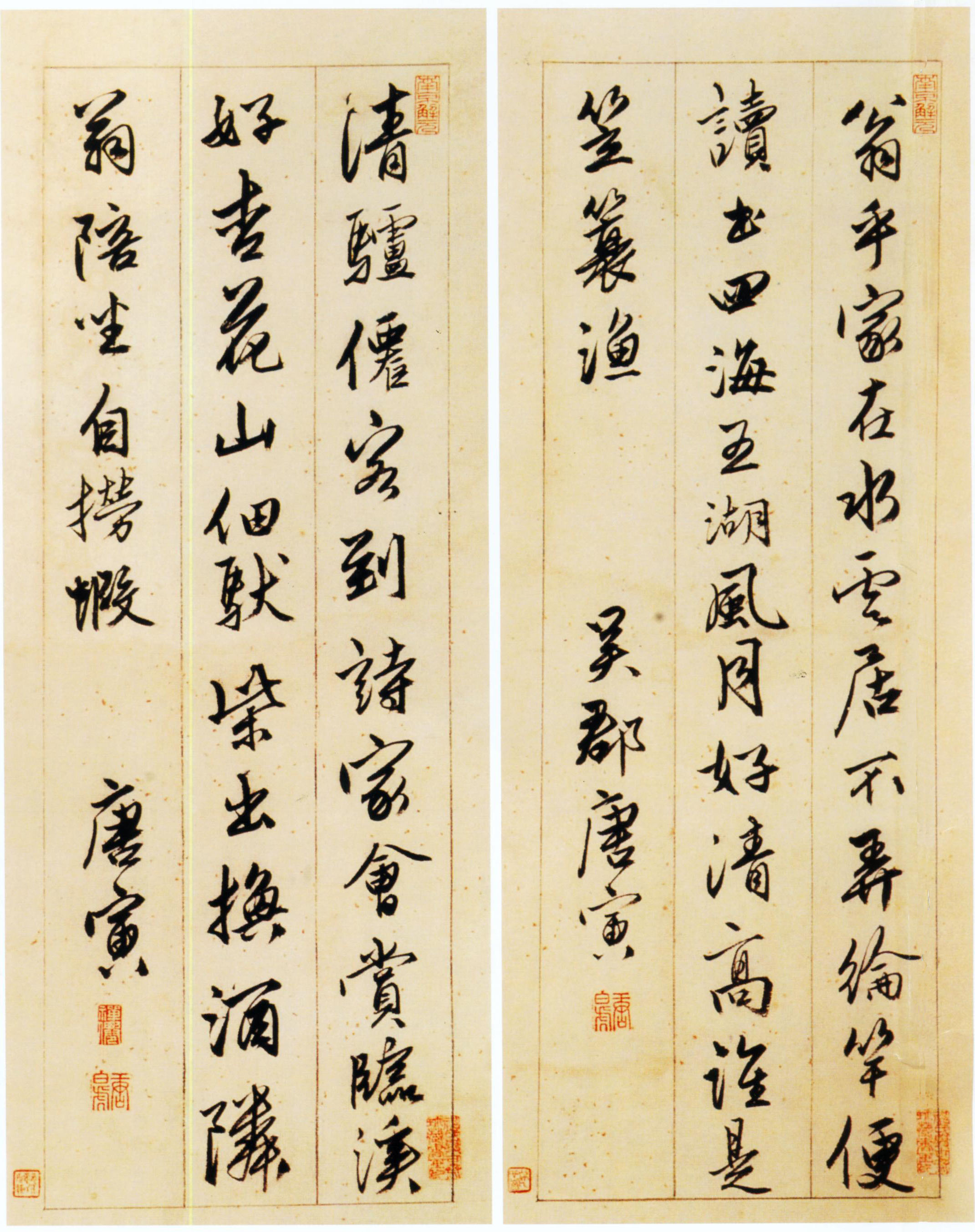 唐寅《行书绝句四条屏》 纸本行书 57.2×22cm×4 广东省博物馆藏