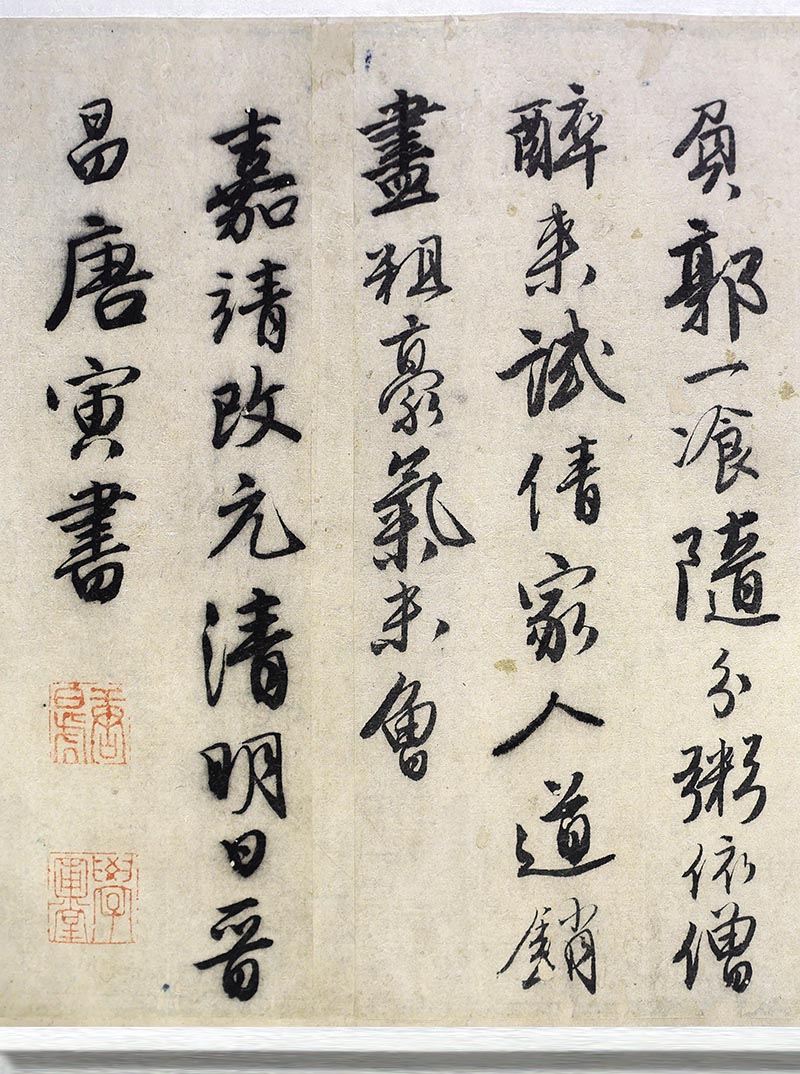 明代中期,吴中文人沈周、文徵明、唐寅与友人常以“落花”为题作诗书画,产生了不少名品。沈周是“落花”主题的发起人,于弘治十七年甲子(1504)撰《落花诗》七律十首,并传于文徵明。文徵明又与诸友作诗唱和,沈周再和、又和二十首,共计三十首,广泛流传。唐寅和沈周《落花诗》三十首,并多次以《落花诗》作书。据文献著录,唐寅作诗六百余首,以《落花诗》为题的占相当部分,至晚年仍改补《落花诗》。《落花诗》可谓贯穿了唐寅的一生。有学者将唐寅的三十首《落花诗》与沈周的三十首《落花诗》对照,发现不仅韵部全部相同,而且有二十七首所用韵字及各韵字所处位置完全一致,可见唐寅作诗之工。