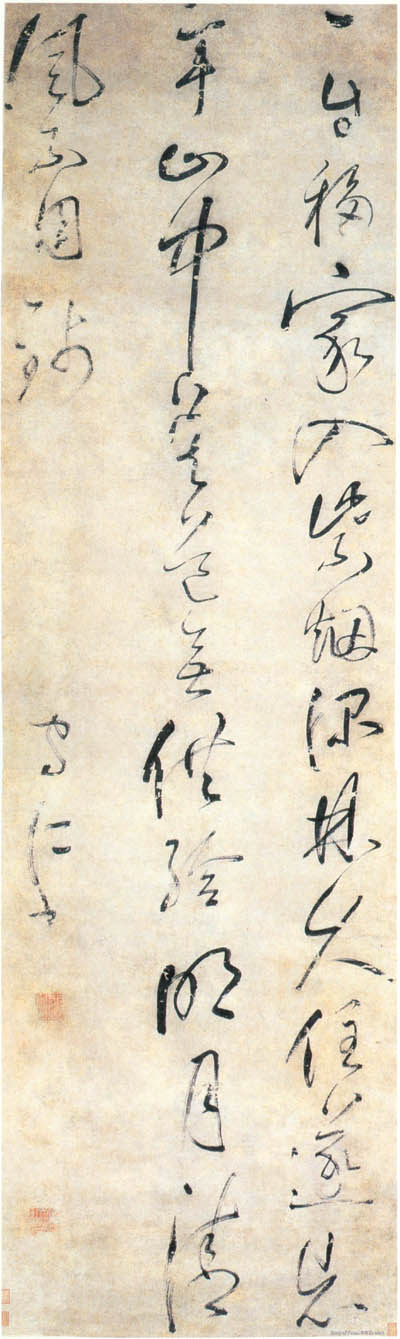 王守仁《题灌山小隐七言绝句》轴 纸本 草书 85.4×19.6cm 正德九年(1514)上海博物馆藏