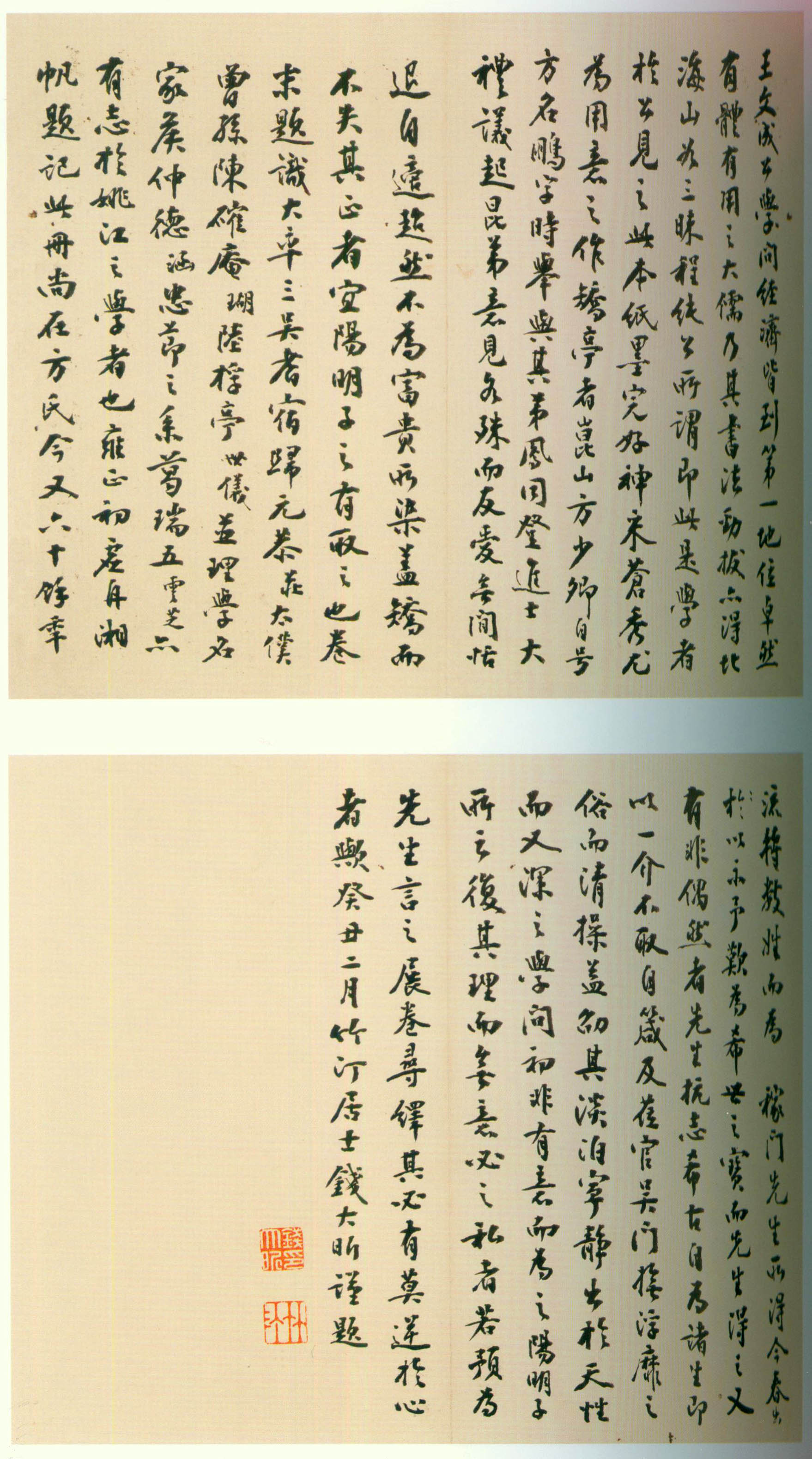 徐渭曾评其书:翩翩然凤翥龙蟠也,使其人少亚于书,则书且传矣。册页后有清人钱大昕、汪志伊、侯涵、方治、陆世仪、归庄等人题跋。《矫亭说》是其代表作。