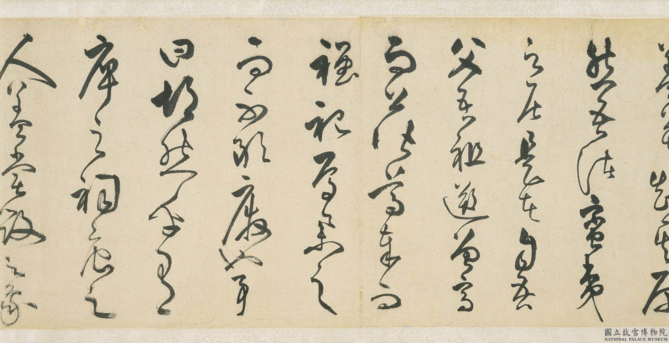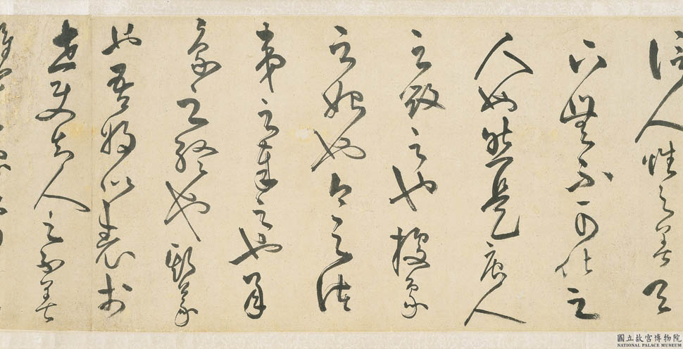 王阳明书写本幅时只三十七岁,以草书书写,草法嫻熟,笔力奔放昂扬,使转顿挫皆极有法度,字形变化多端,线条遒劲多姿,是王阳明传世草书的精品。