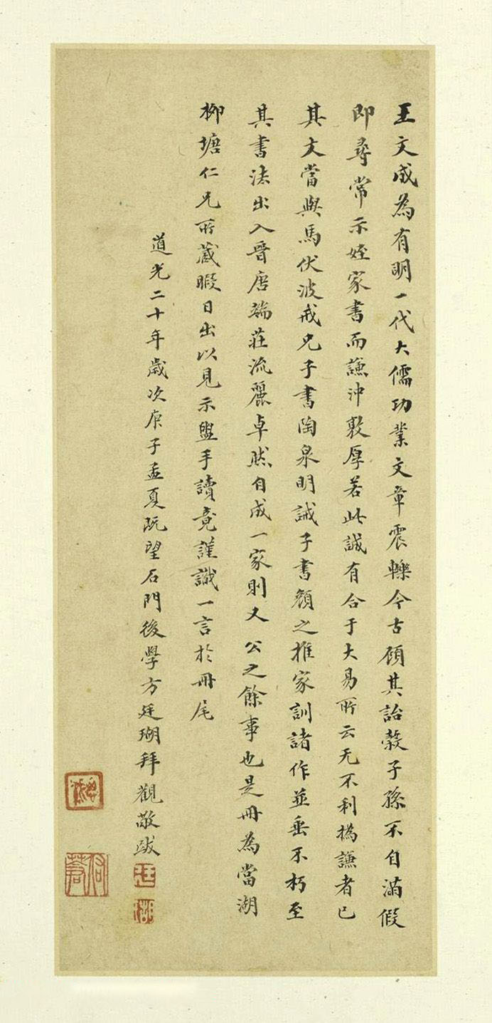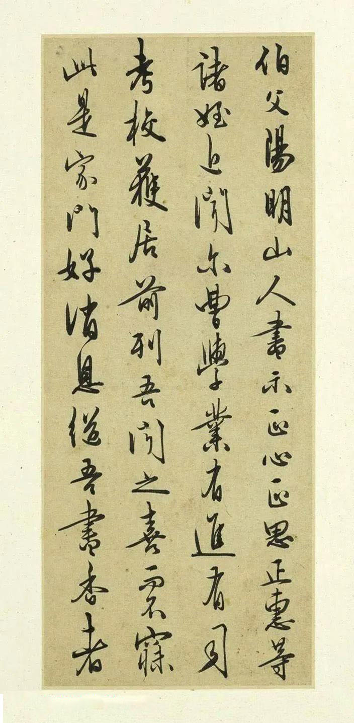 伯父阳明山人书示正心、正思、正惠等诸侄。近闻尔曹学业有进,有司考校,获居前列,吾闻之喜而不寐;此是家门好消息。继吾书香者,