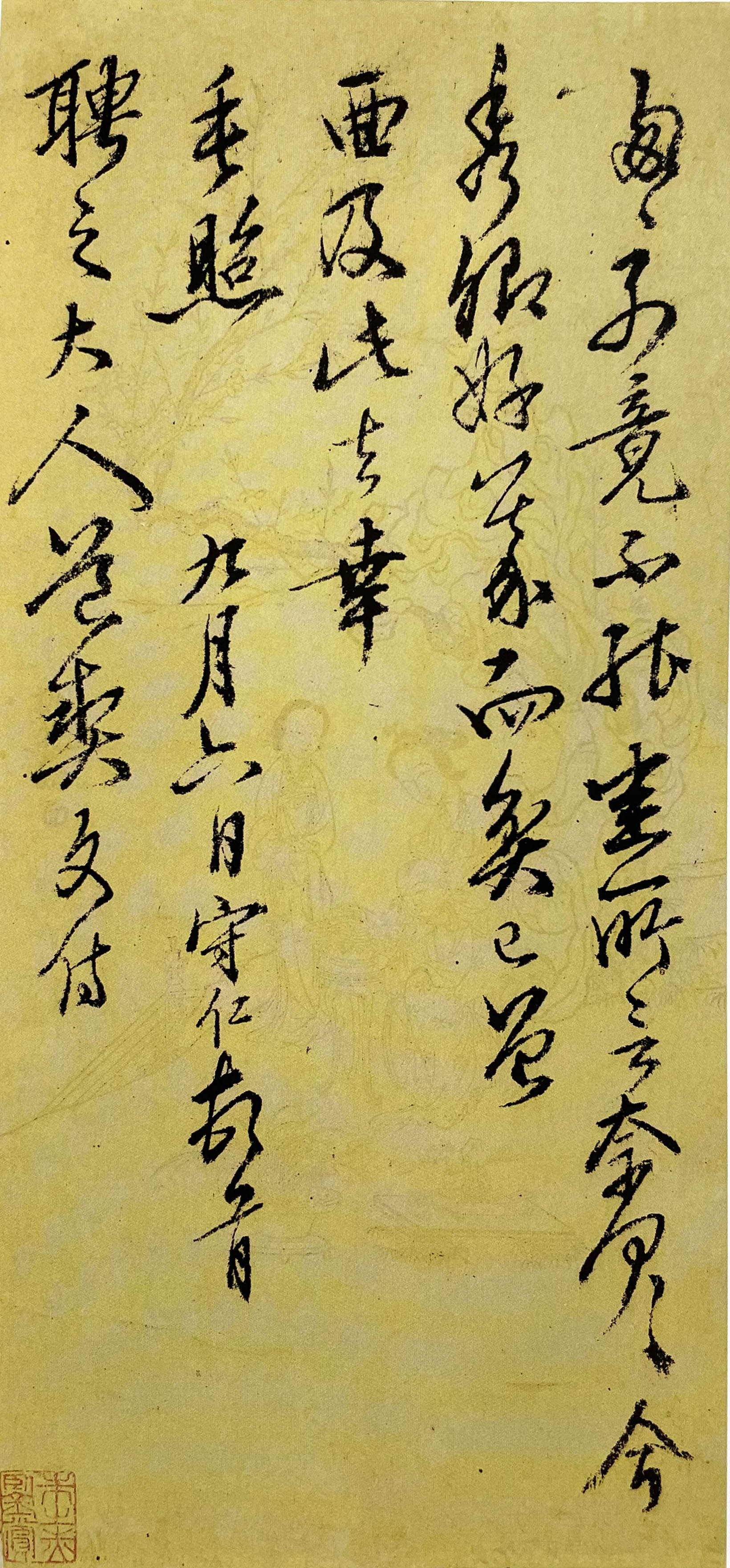 释文:匆匆别竟,不能悉所言,奈何奈何?今秀卿好义而贫,已曾面及,此去幸垂照。九月六日守仁顿首。 聘之大人道契文侍。