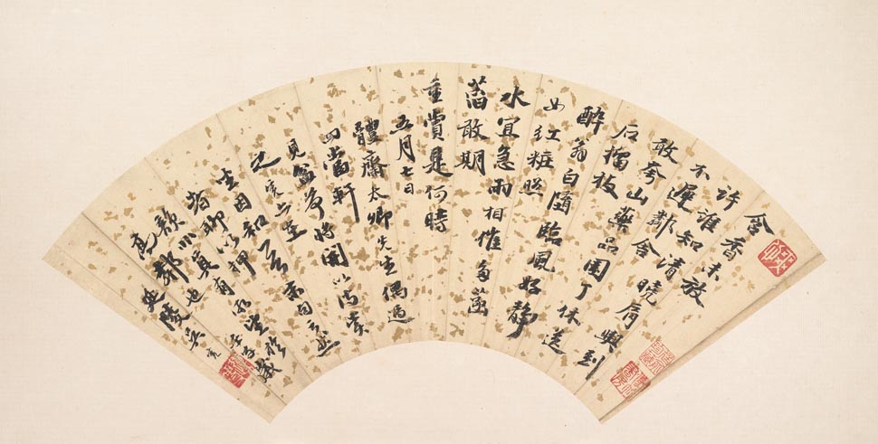 吴宽《和体斋赏荷诗一首扇面》纸本金笺行书 17.5×49.5cm 美国纽约大都会艺术博物馆藏