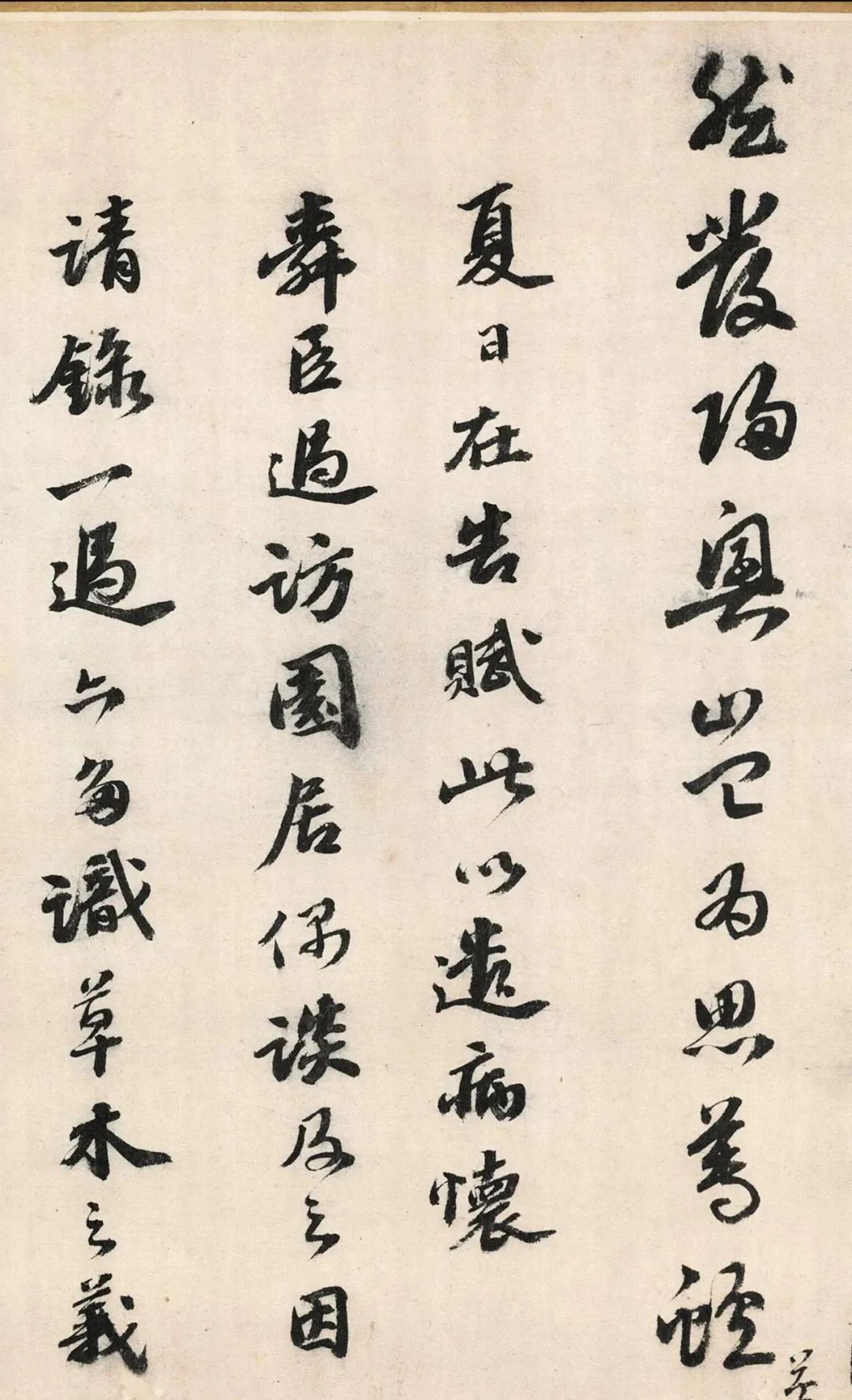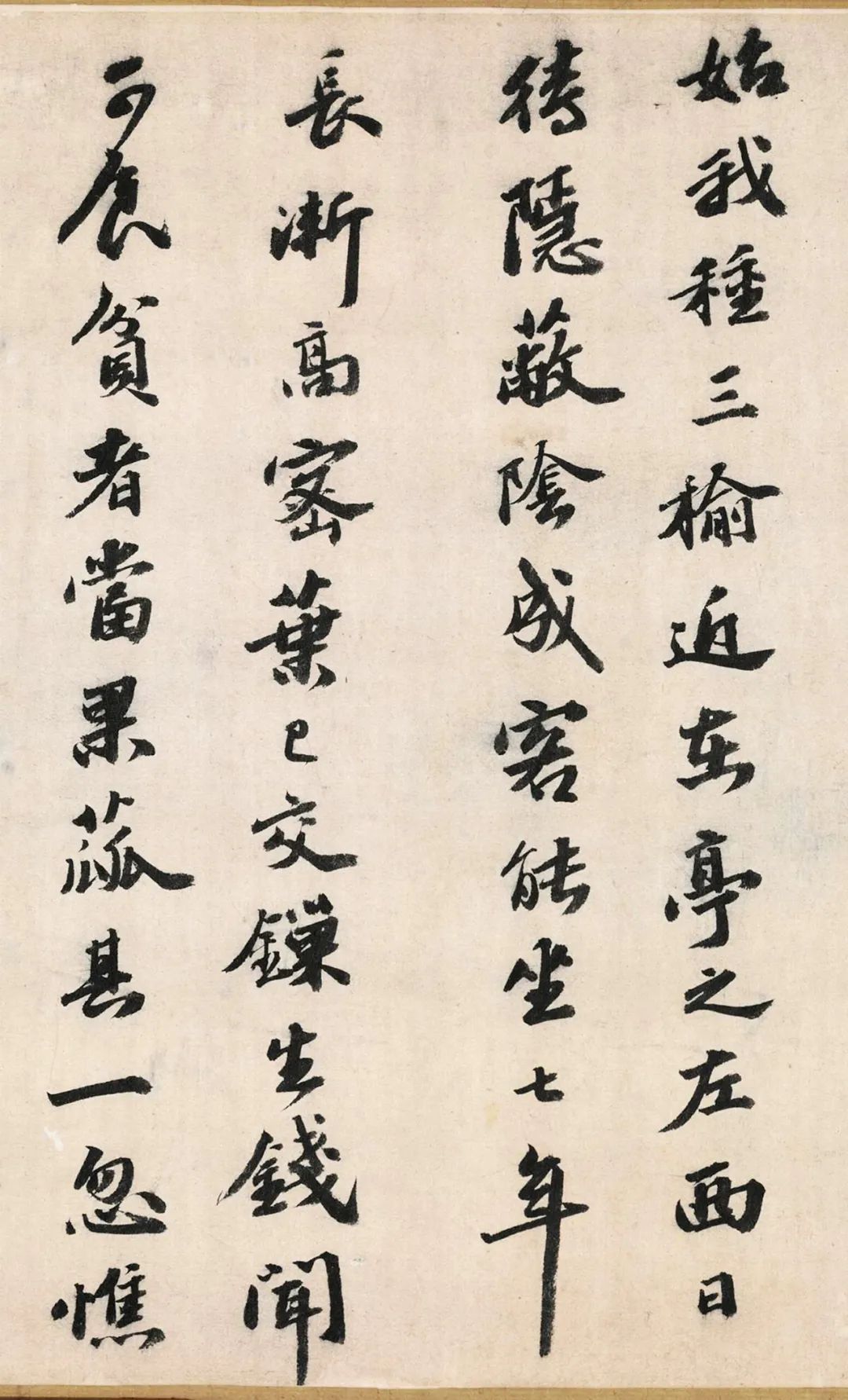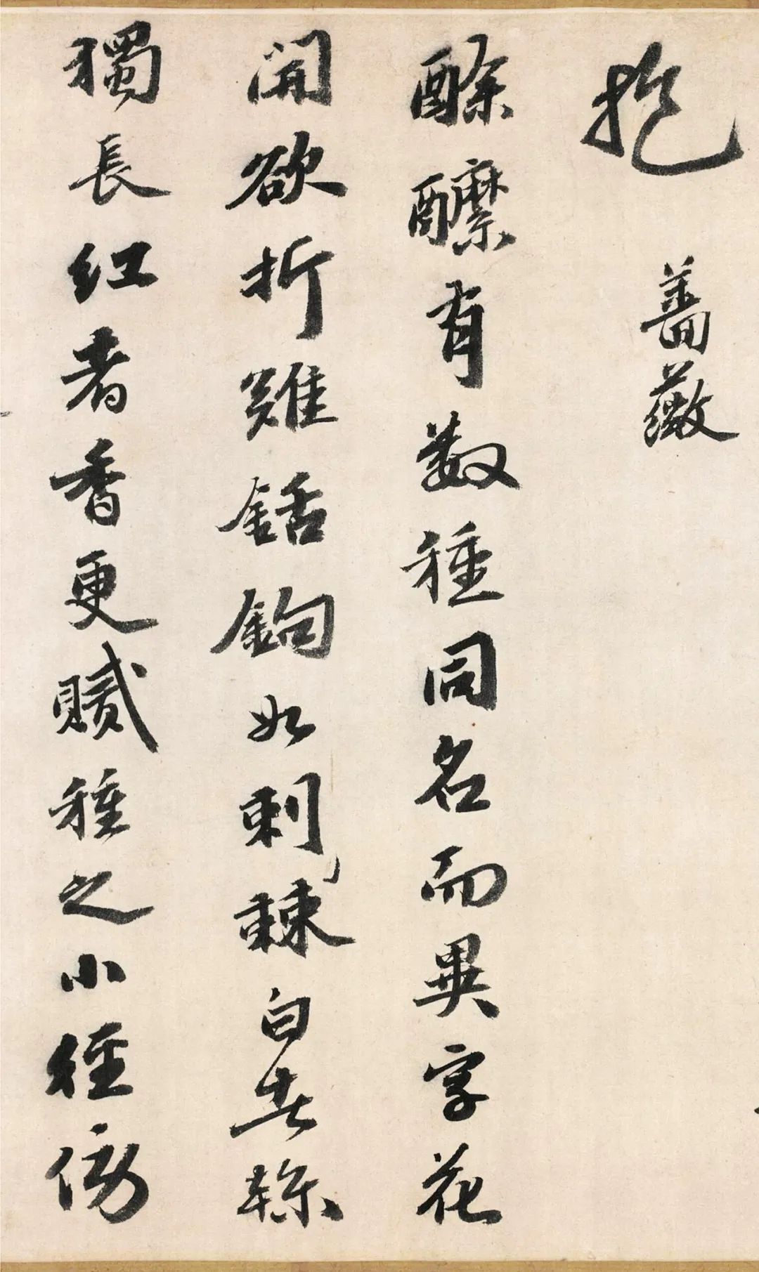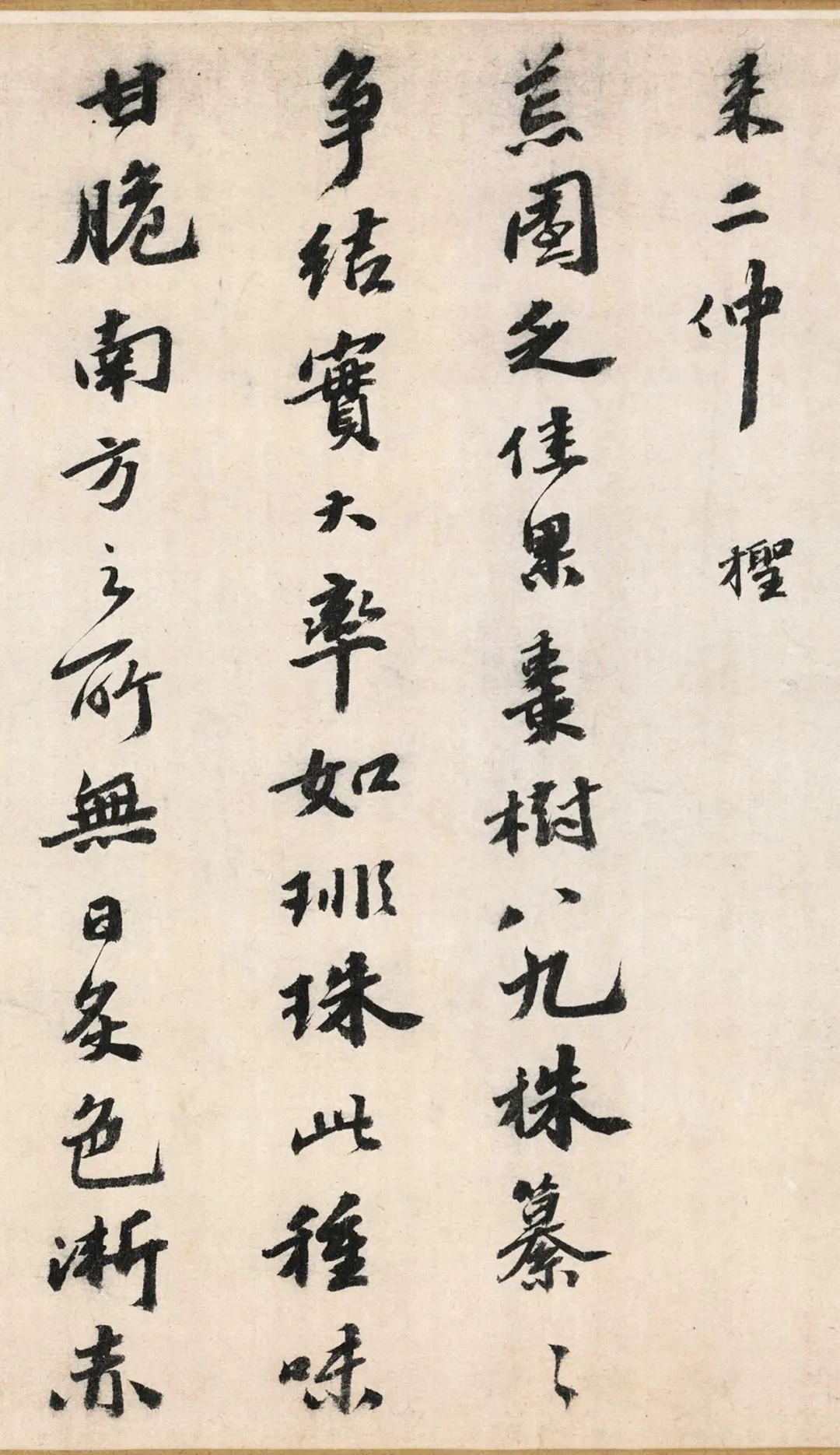 此卷为吴宽行书代表作,作品以诗记述园中诸草木。书法字势俊朗,收放自如,笔画稳健,书风质朴,无意经营,具有一种率意自然之美。