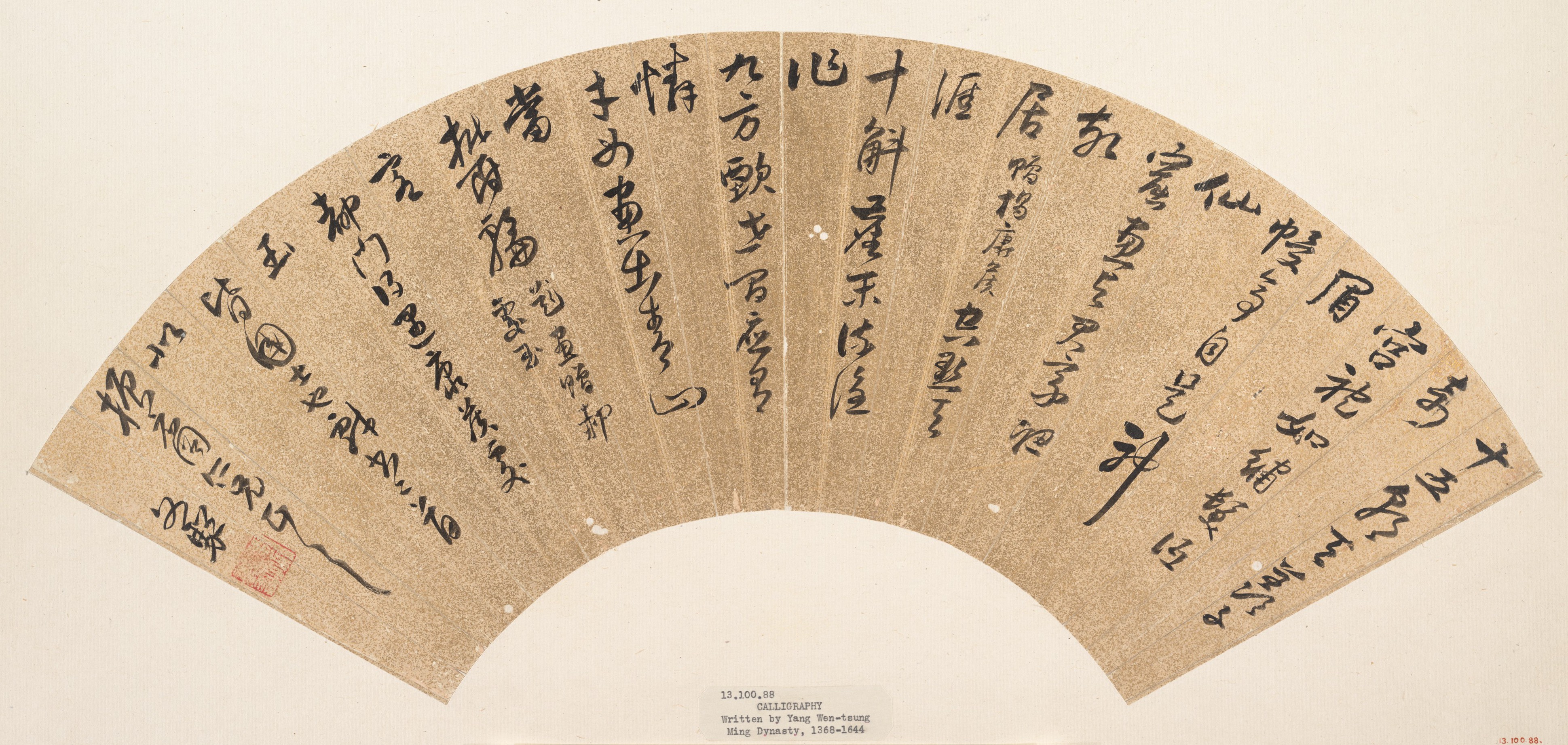 杨文骢《戏书七言二首诗扇》草书 16.8×53.3 cm 美国纽约大都会艺术博物馆藏