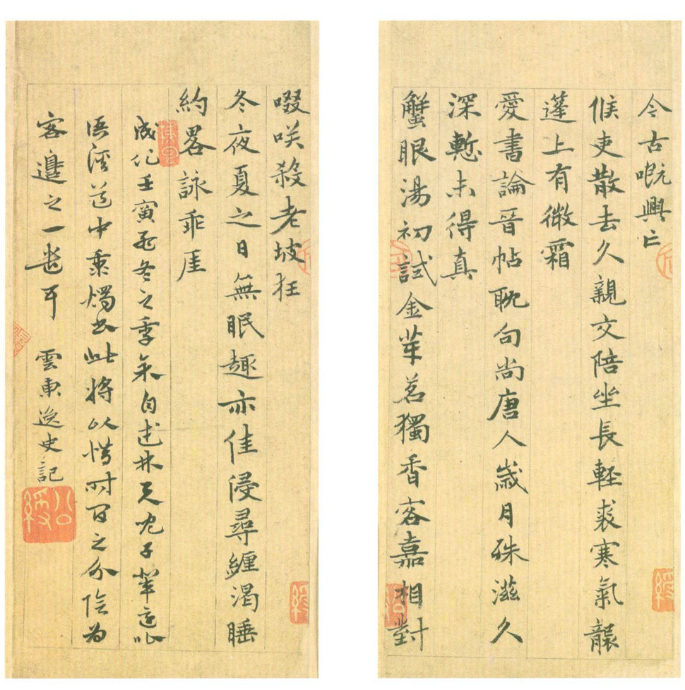 姚绶《 夜行诗》 纸本 楷、行、草书。每页24.1×10.3cm 三开 北京故宫博物院藏