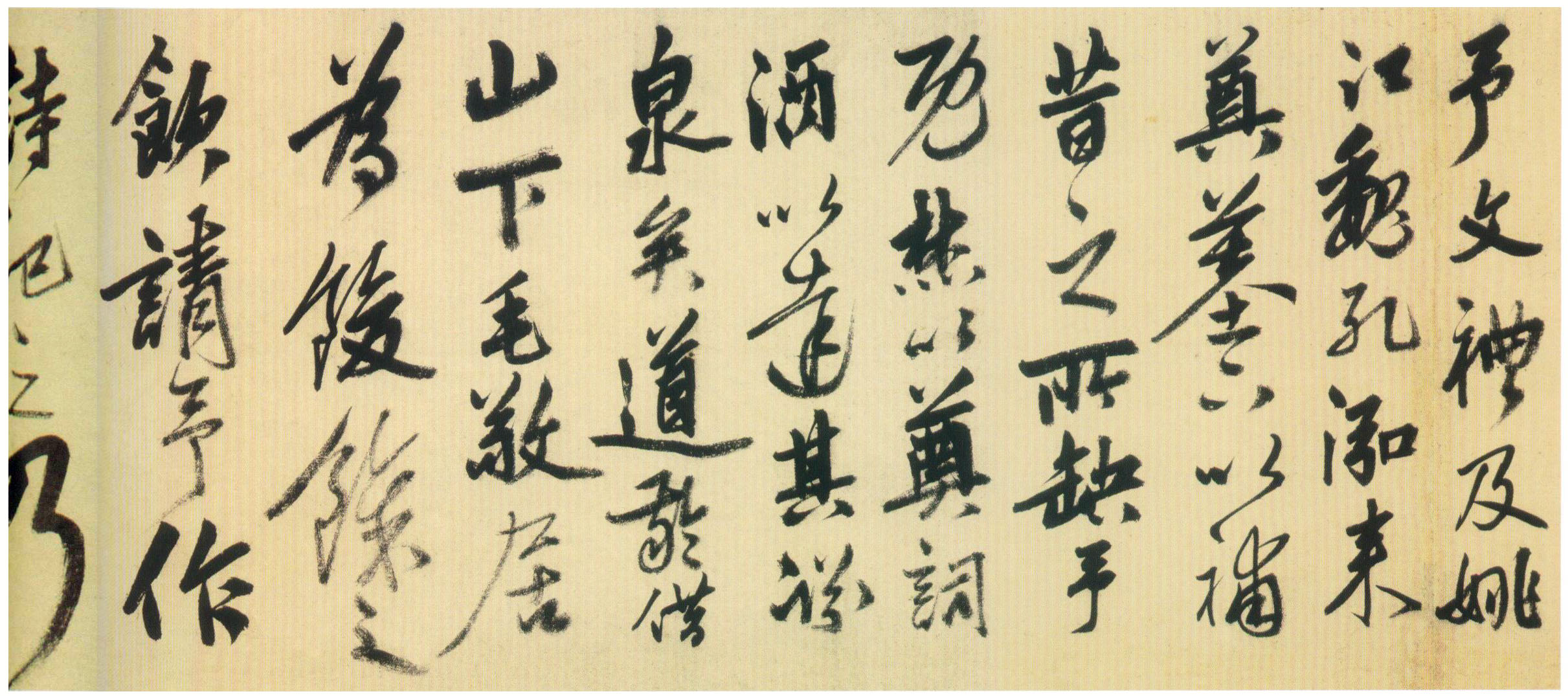 是书作於1480年。通篇墨色淋漓,痛快非常,有江河奔腾的气势,多用飞白,枯润 并济,缓急时变,明人草书特色可从中而见之,明之。(老木)