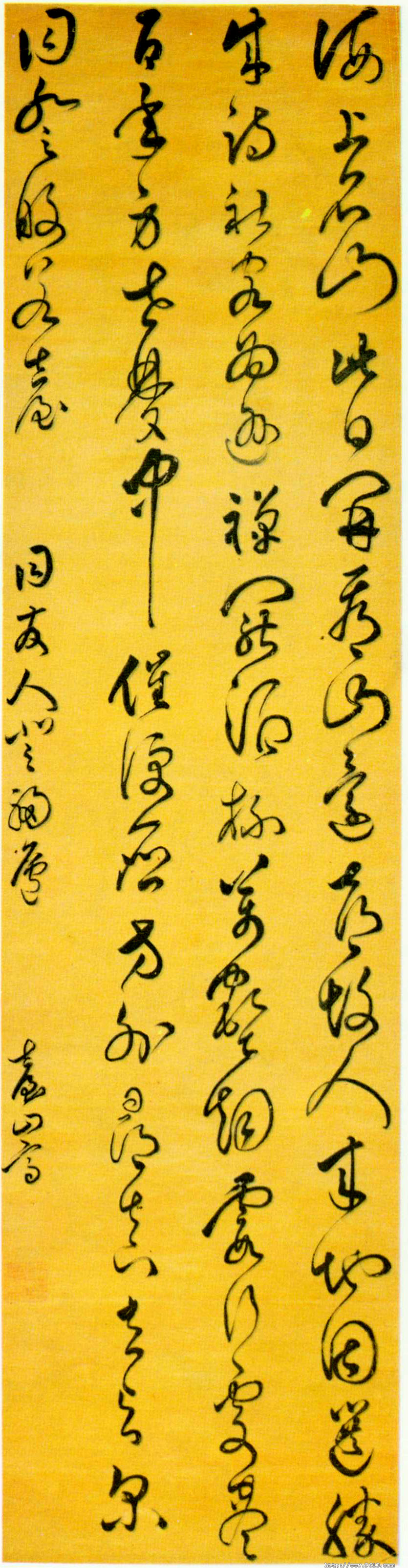 叶向高《同友人登福庐诗轴》绫本草书 199.3×51cm 北京故宫博物院藏