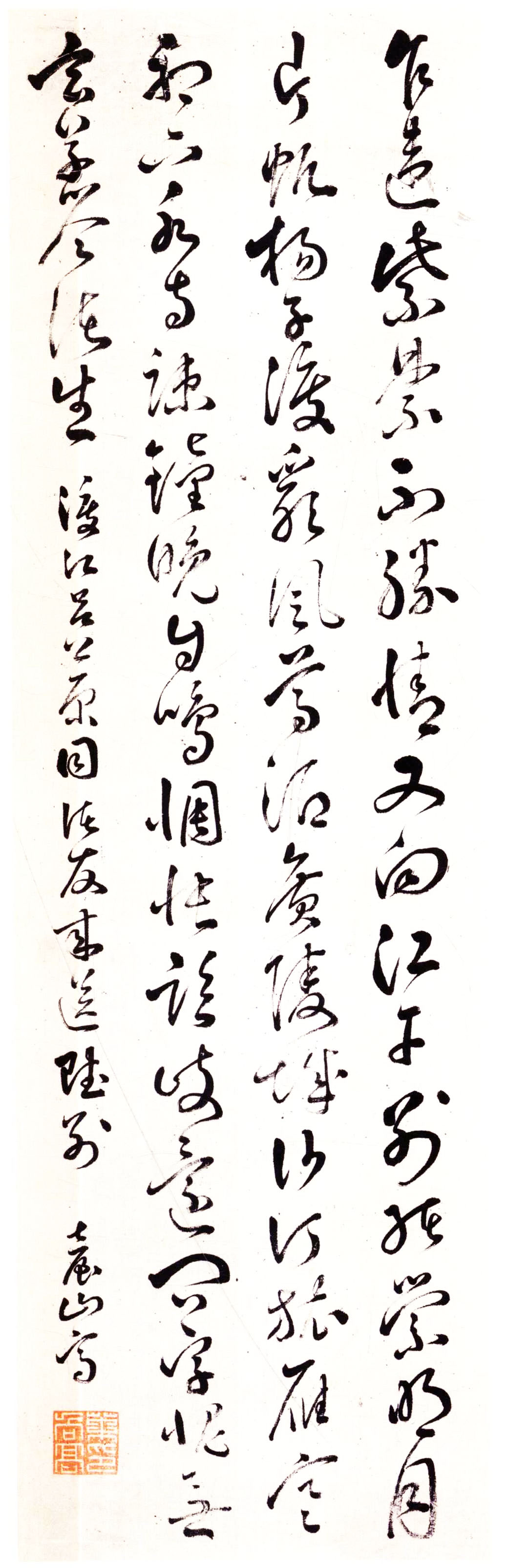 释文:乍违紫禁不胜情,又向江干别绪萦。明月片帆扬子渡,乱风尊酒广陵城。沙汀旅雁寒初下,水寺疏钟晚自鸣。惆怅临歧还问字,愧无玄草答诸生。渡江吕公原同诸友来送赋别。台山高。