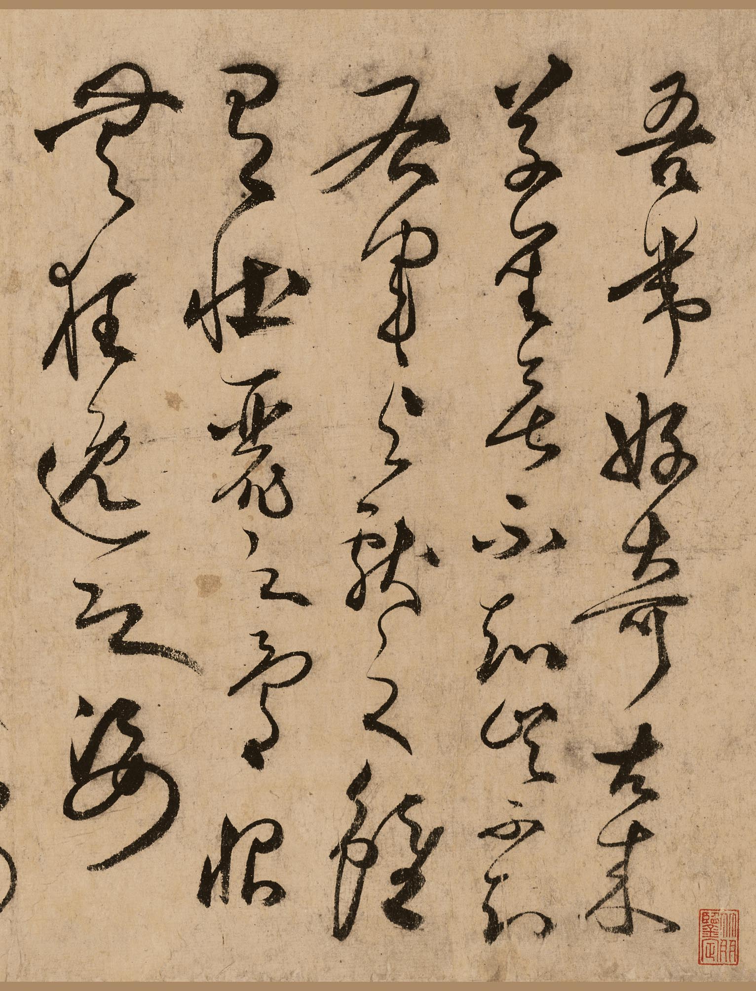 此卷书《任华〈怀素上人草书歌〉》,应是张弼传世最好的作品,它包含了张弼对僧怀素的钦敬,而且随着诗意的伸展,隐然把自己代入其中,成了诗中的主角。正如《自叙帖》是怀素草书一次淋漓尽致的表演,张弼亦借任华赞美怀素的诗句,把自己在狂草书上的成就尽情发挥。怀素耶,张弼耶,写到后来,明显有照花前后镜的狂喜了。