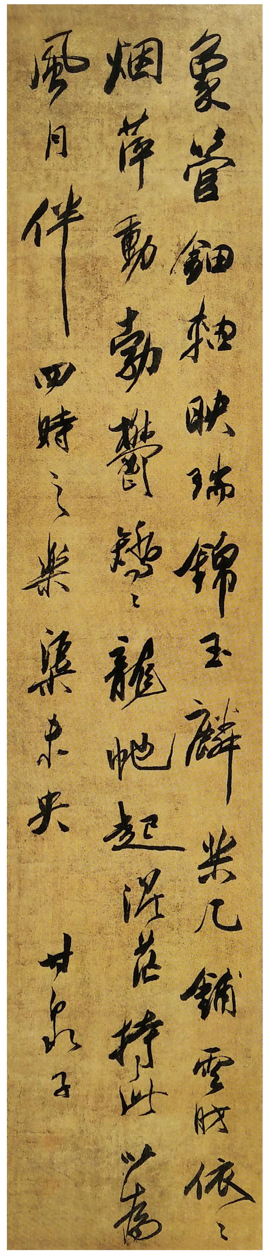 湛若水《行书七言诗轴》绫本行书 198.4×39.4cm 浙江省博物馆藏