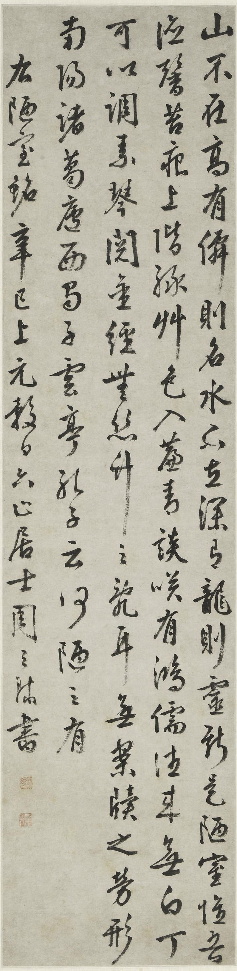周天球《行书陋室铭轴》 纸本 纵130.1厘米,横31.5厘米 上海博物馆藏