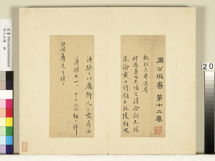 周天球《致白间尊先生尺牍》纸本行书 24.7×10.8cm &24.7×10.9cm 台北故宫博物院藏