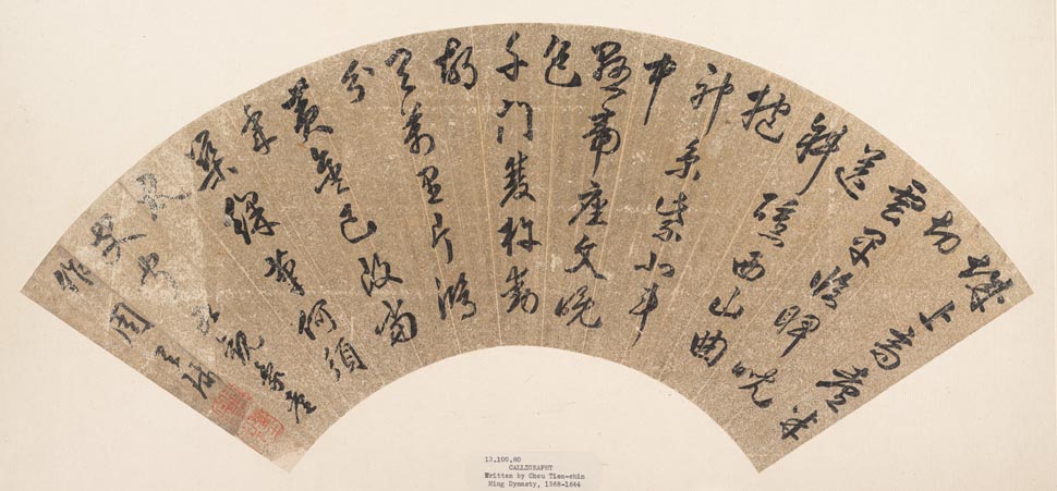周天球《草书“观象台作”七律诗扇》(传) 纸本金笺草书 17.5×54.0cm 美国纽约大都会艺术博物馆藏