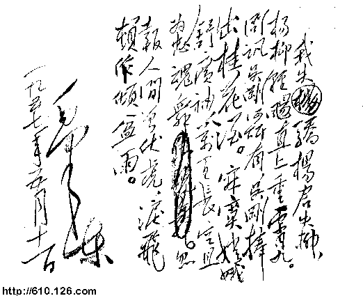【说明】:毛泽东的有些墨迹是经过处理后才出现于各种印刷品中的,因此这些不能说是真正意义的真迹)
