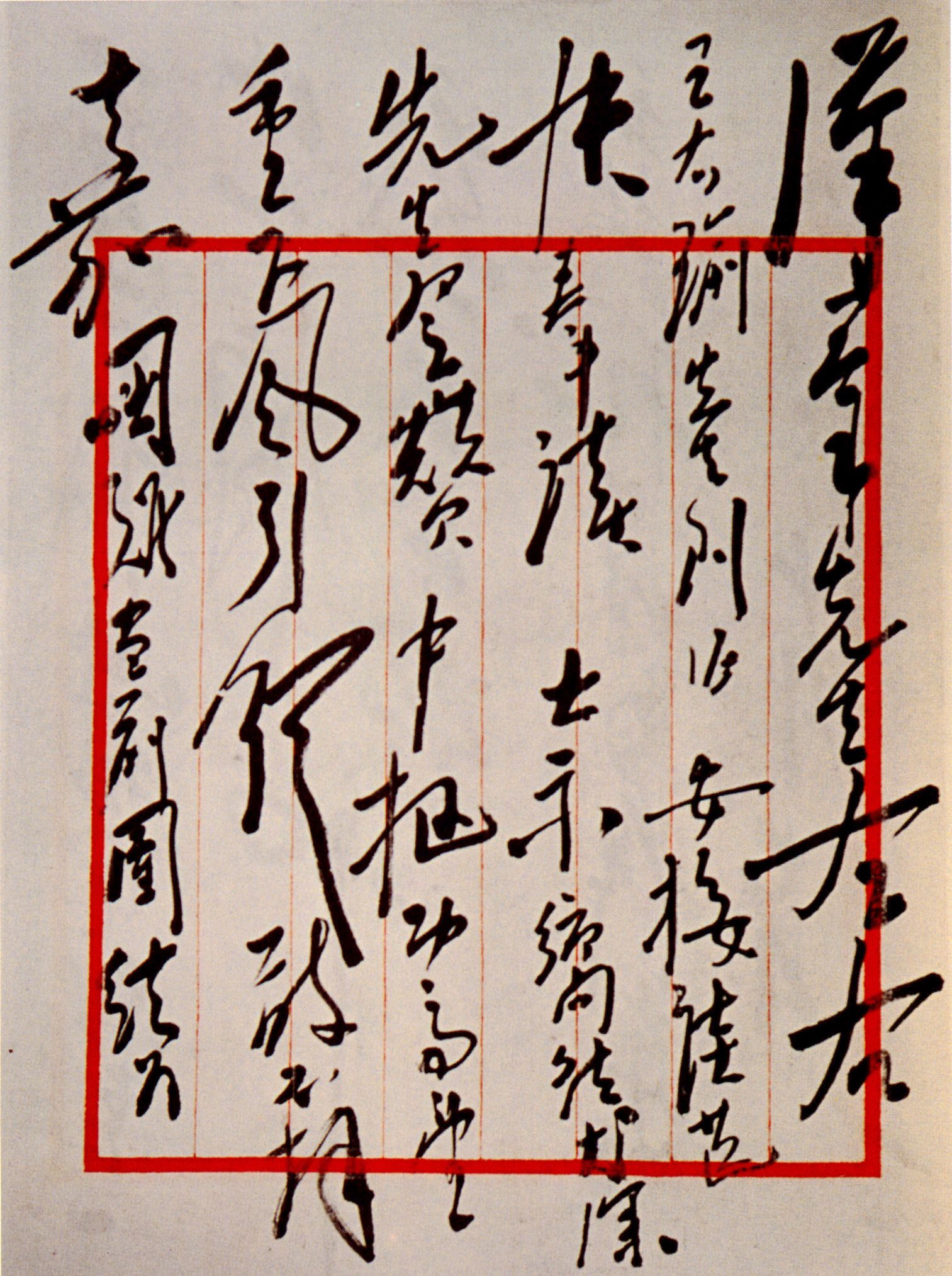 王右瑜先生到延安,接读甚快。奉读大示,向往尤深。先生翊赞中枢,功高望重,下风引领,敢不拜嘉。国难当头,团结(为第一义,此物此志,当与先生同之也。敬复。即颂