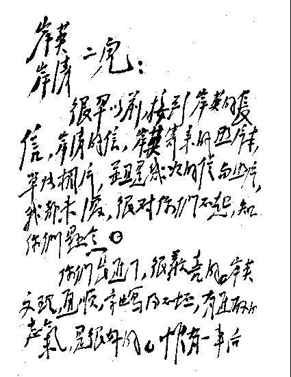 很早以前,接到岸英的长信,岸青的信,岸英寄来的照片本,单张相片,并且是几次的信与照片我都未复,很对你们不起,知你们悬念。