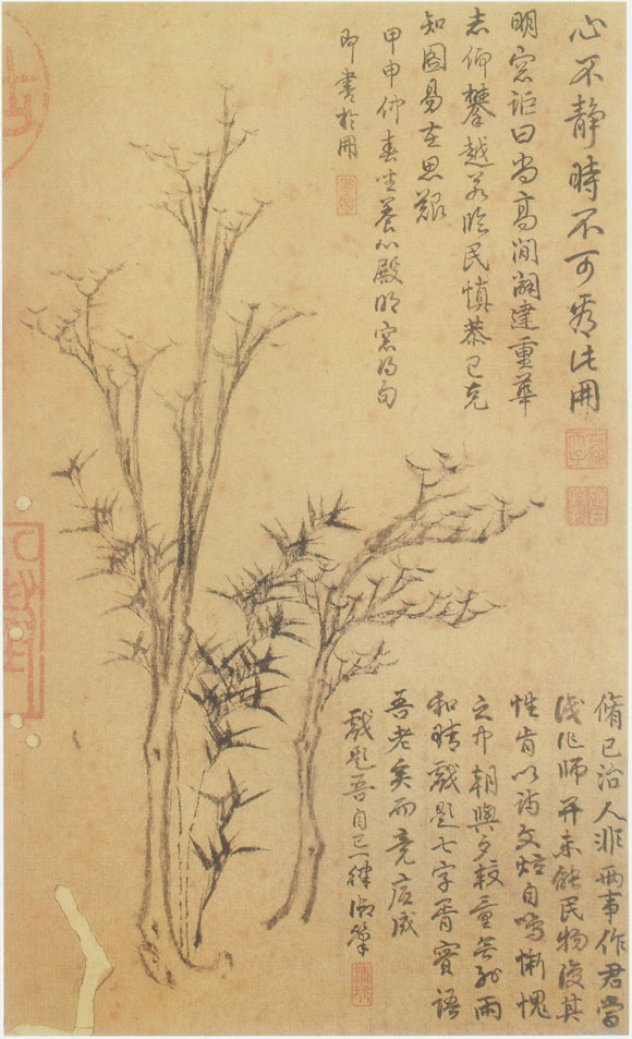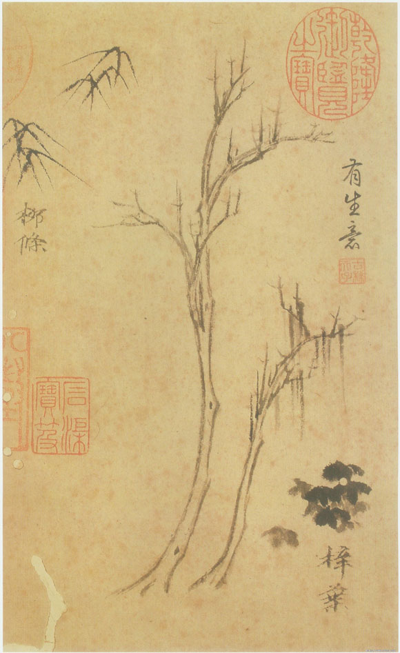 者不厌其为淡,始见天真。用笔遒劲,乃是得法。二树俱一面,一