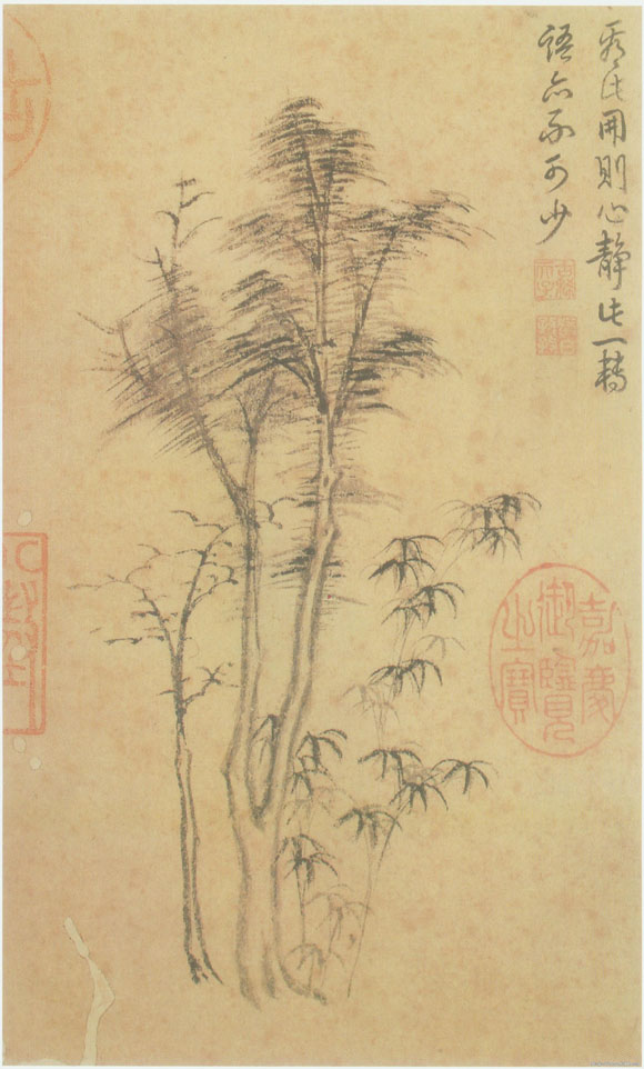 侧本,初学者不可不知。画树须间以竹,不必太工。但看晴树则配