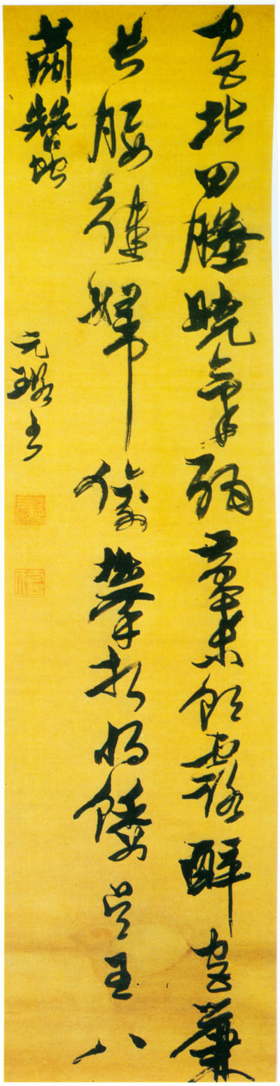 倪元璐《行书李贺南园一首诗轴》绢本行书 194×49cm 广东省博物馆藏
