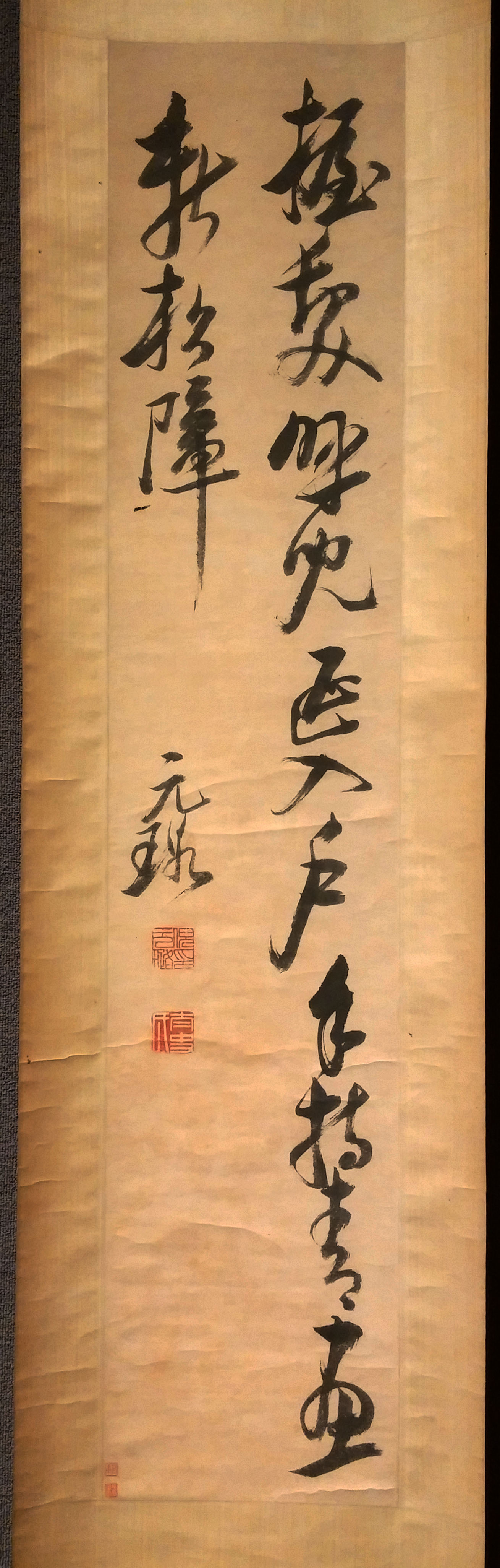 倪元璐《行草书杜甫题李尊师松树障子歌句轴》 纸本行草书,135×27.5cm。广州艺术博物院藏