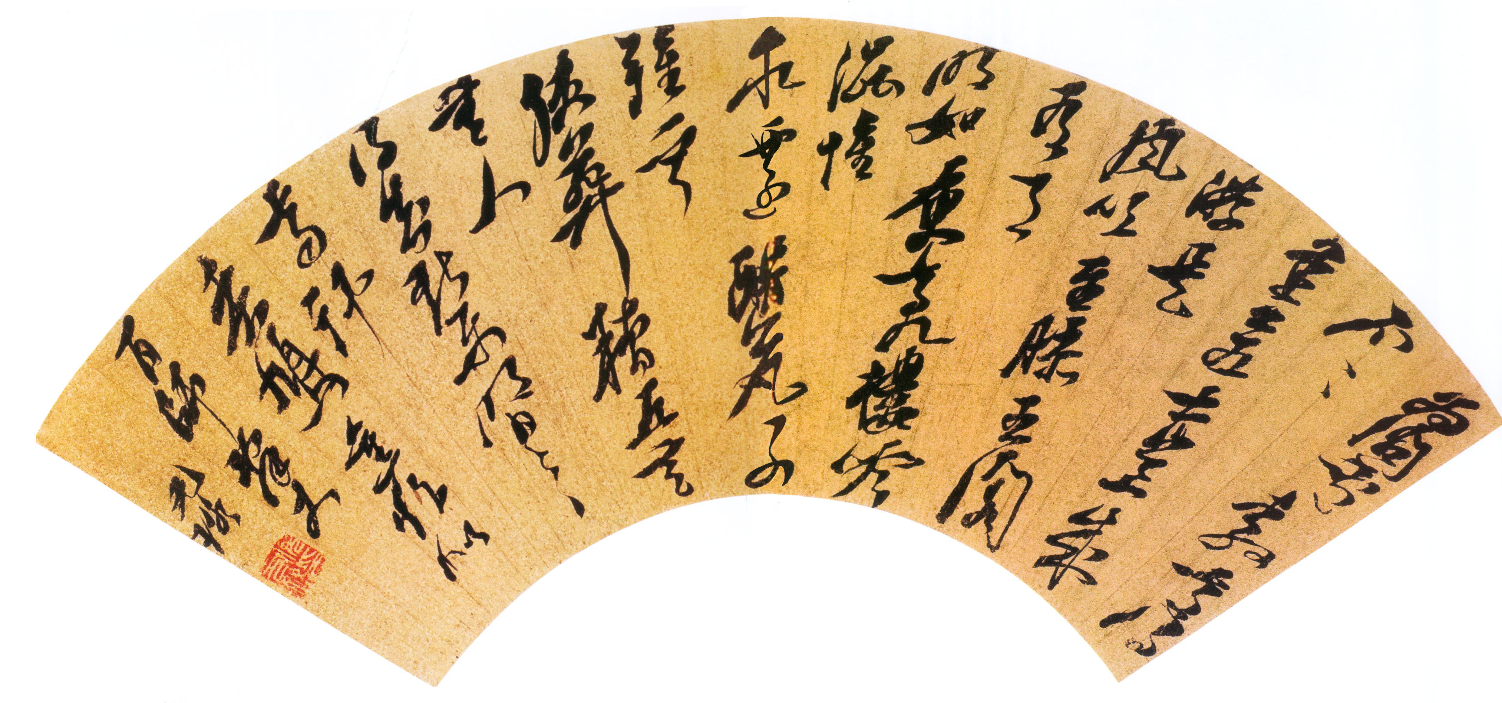 倪元璐《澜园招饮诗扇面》 泥金纸本草书,17×52.5cm。北京故宫博物院藏