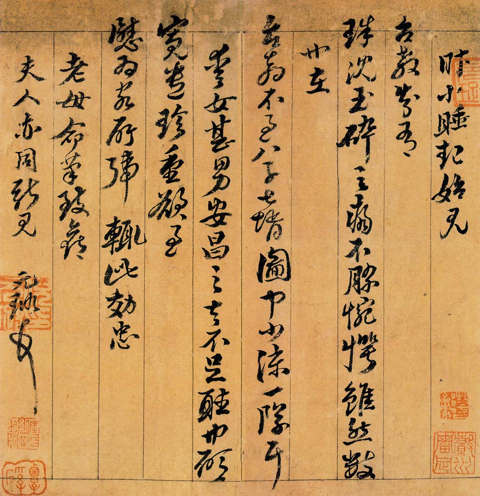 此札内容为慰亡,写得沉痛哀婉,但又以通脱之观点为生者解说,言简意深,于平常俗事中见高远之怀。所书结体端正,行笔朴厚而活泼,极为精彩。